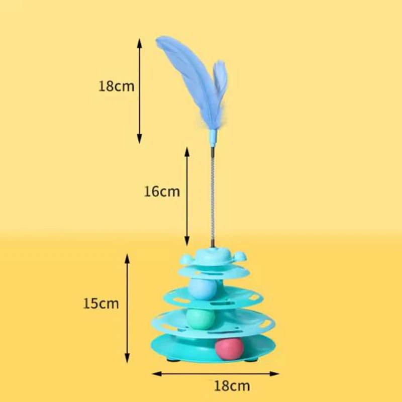 מגדל צעצועים אינטראקטיבי לחתולים, פלטפורמה מסתובבת עם מסלול כדורים, צעצועים עם נוצות, ציוד לאימון חיות מחמד, צעצוע למגדל חתולים