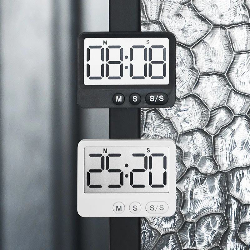 טיימר דיגיטלי למטבח ללימודים, טיימר ספירה מגנטי עם תצוגת LCD גדולה, טיימר דיגיטלי עם שעון עד 99 דקות ו-59 שניות