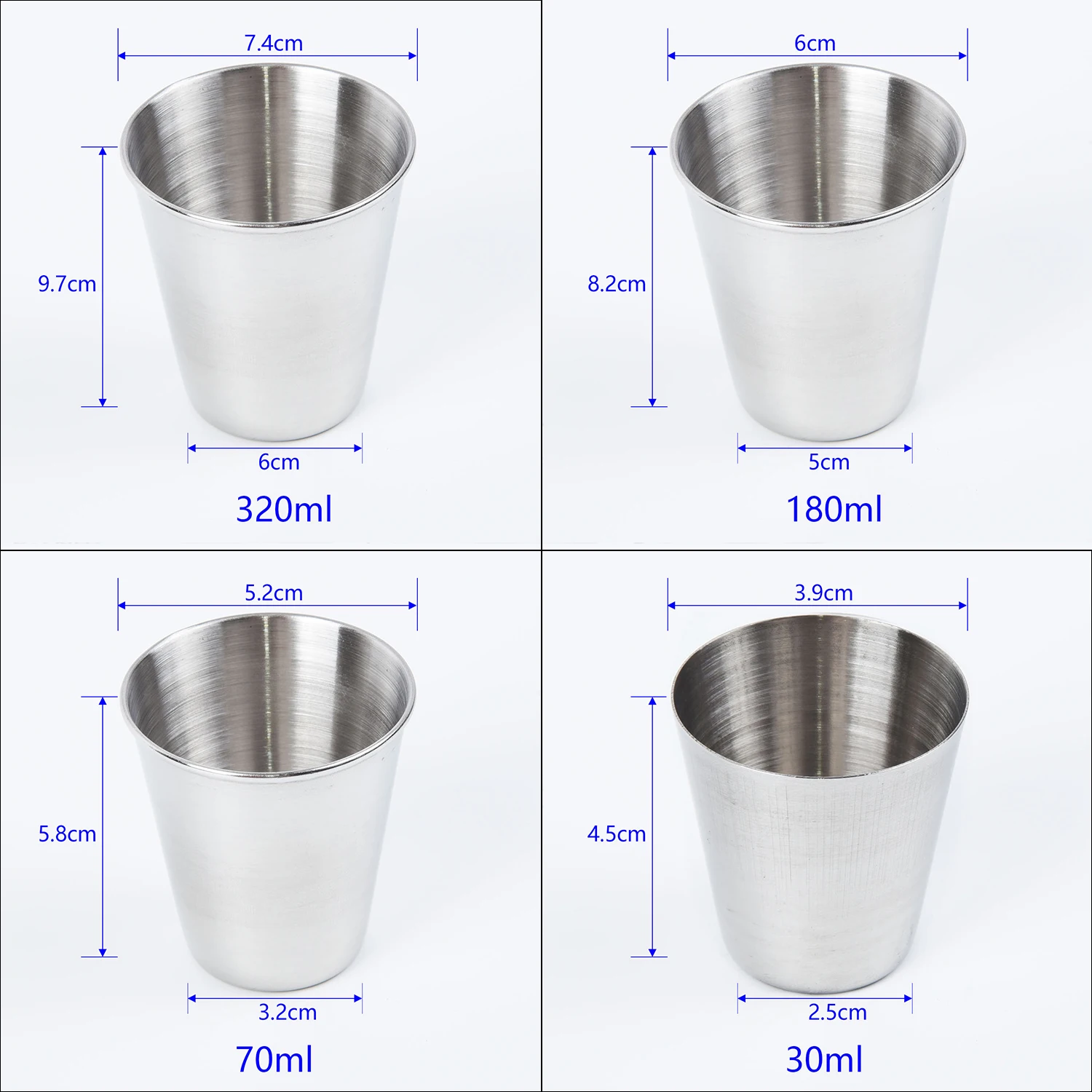 כוס מתכת נירוסטה כוסות בירה 30/70/180/320 מיליליטר כוס מילקשייק לרבל מחנאות כוסות שתייה קפה תה סט