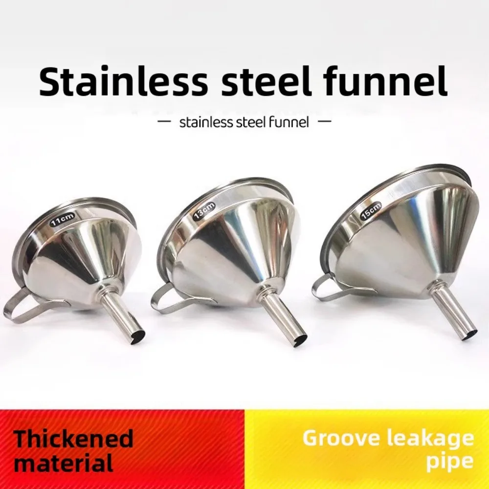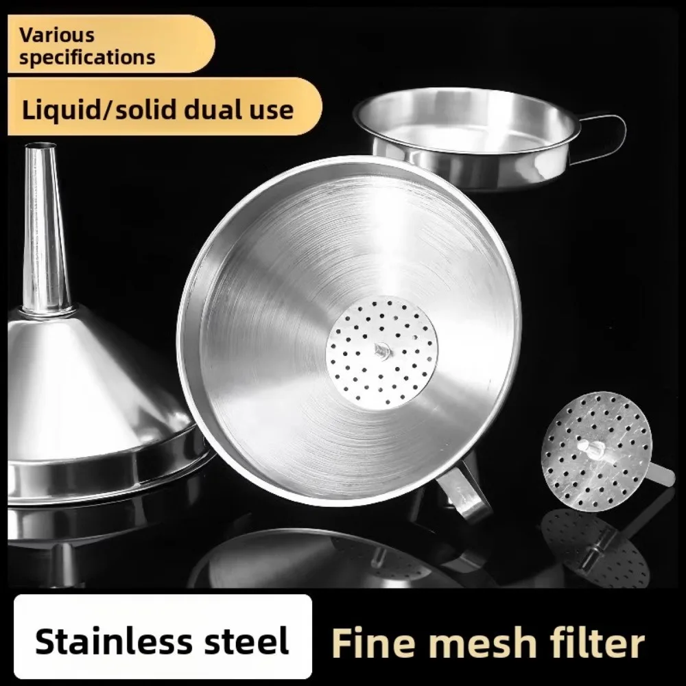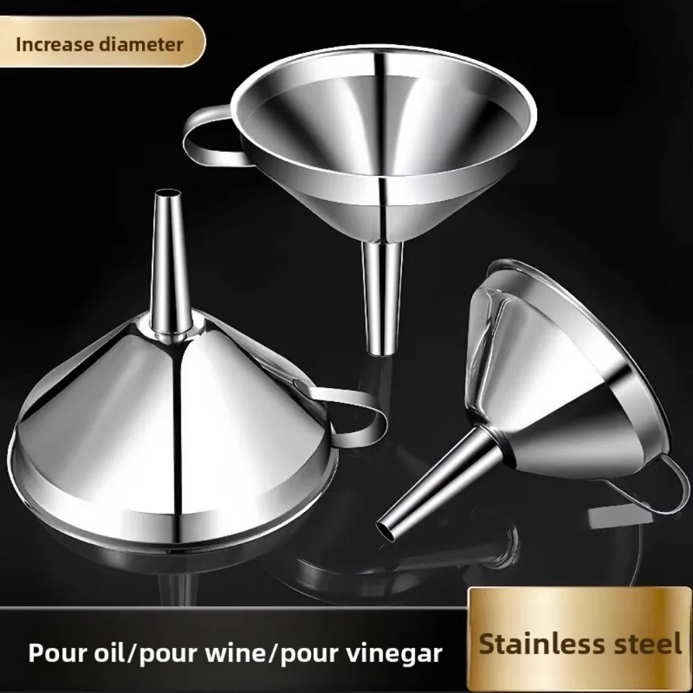 משפך מתכתי לשמן נוזלי במטבח עם מסנן נשלף פה רחב לכלי מטבח