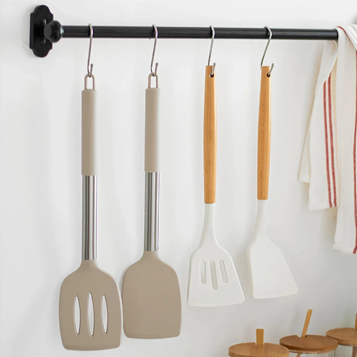 סט כלי מטבח סיליקון עם ידית מפלדת אל-חלד וסט כלי בישול למטבח