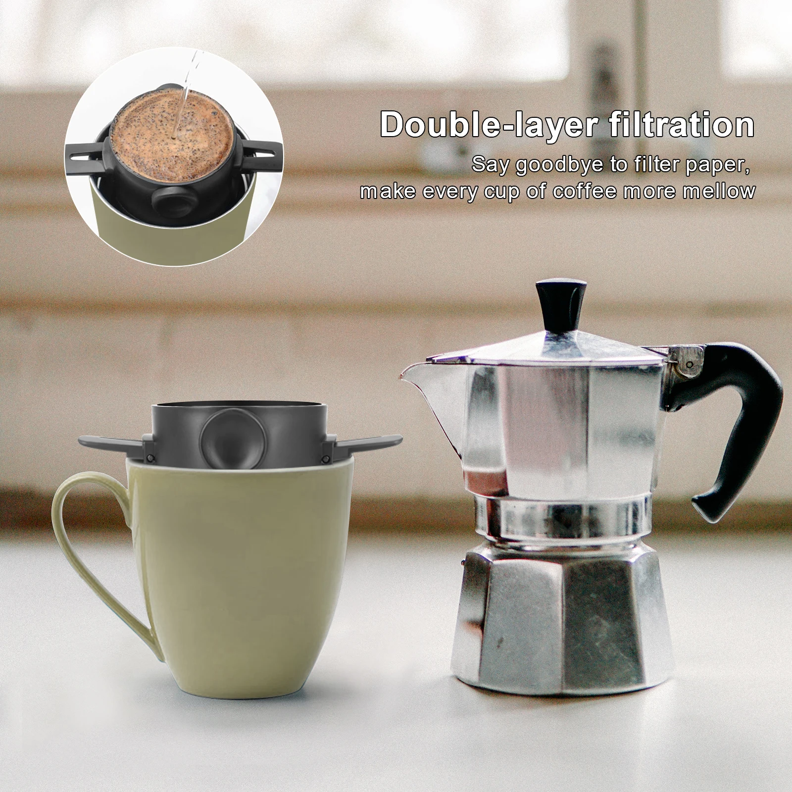 קיפול פילטר קפה מרושל ביד קפה מסנן לטפטף ותה עם מחזיק נירוסטה ללא נייר מסנן