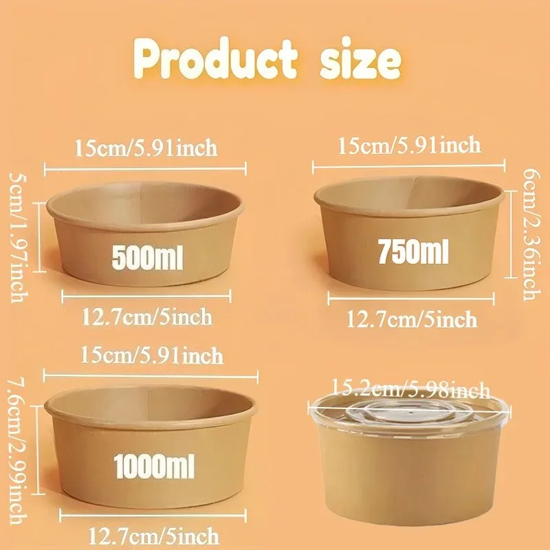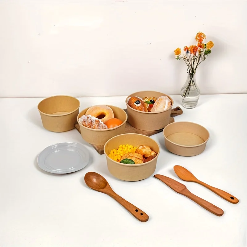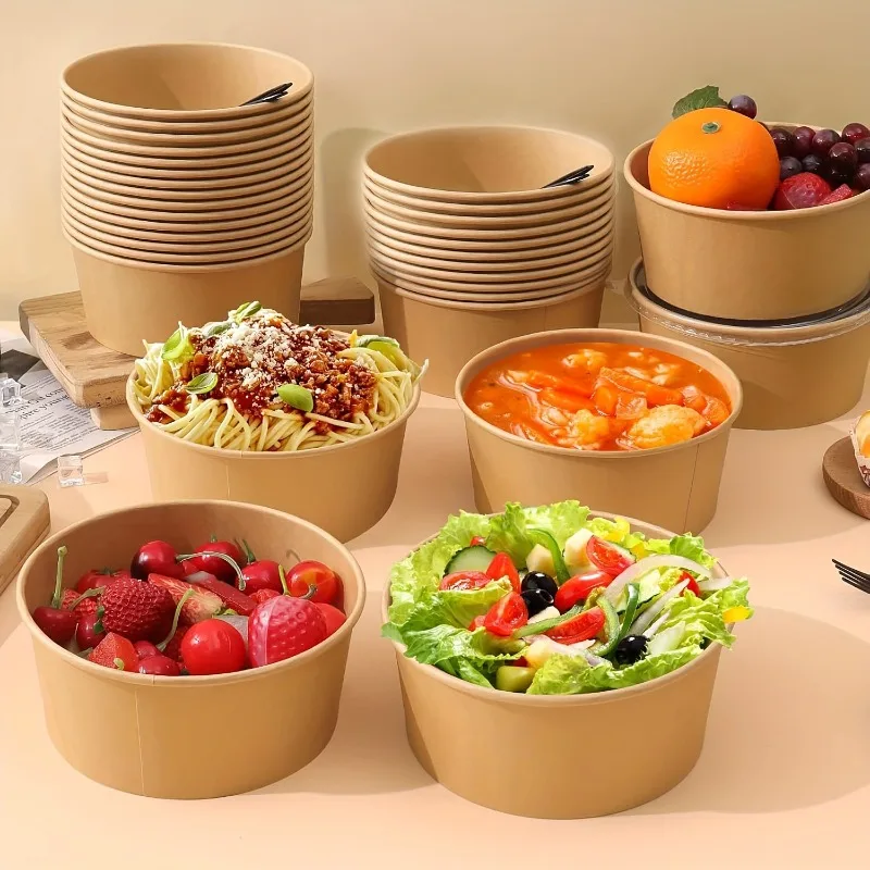 15/30 יחידות קערות נייר קראפט חד פעמיות עם מכסה סלט ירקות מרק מטבח מסעדה מסיבת אחסון חטיפים