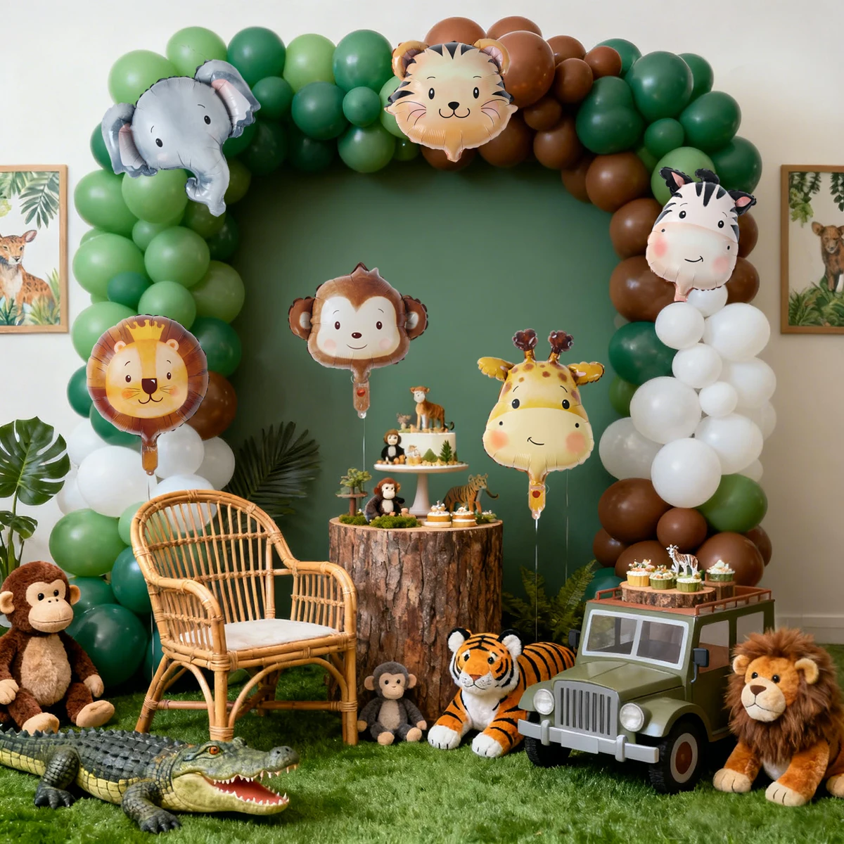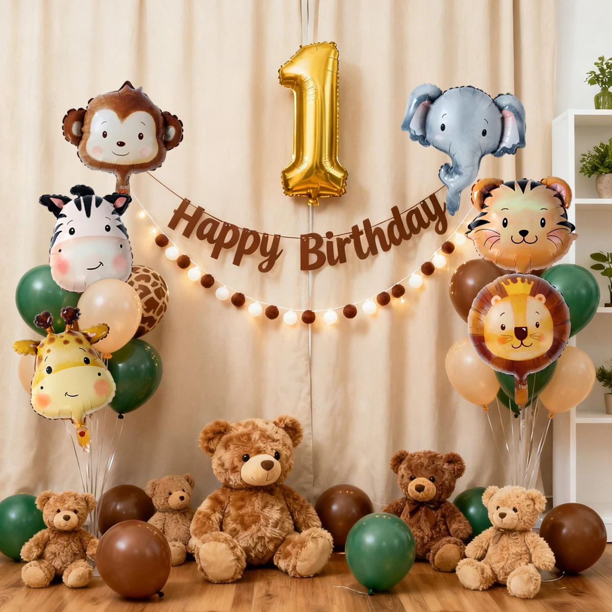 בלוני ראש חיות ג'ונגל מנייר כסף, קישוטים למסיבת יום הולדת, מתנות לילדים, בלוני חיות ספארי, ציוד למסיבת ברית/ה