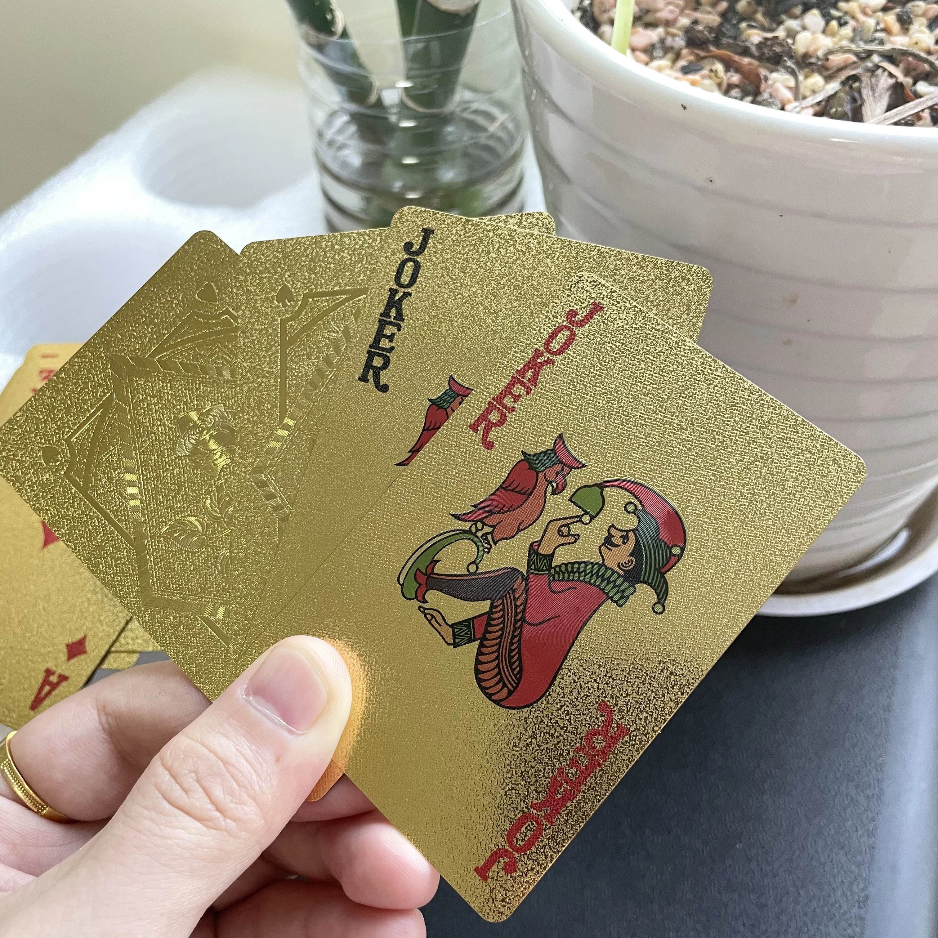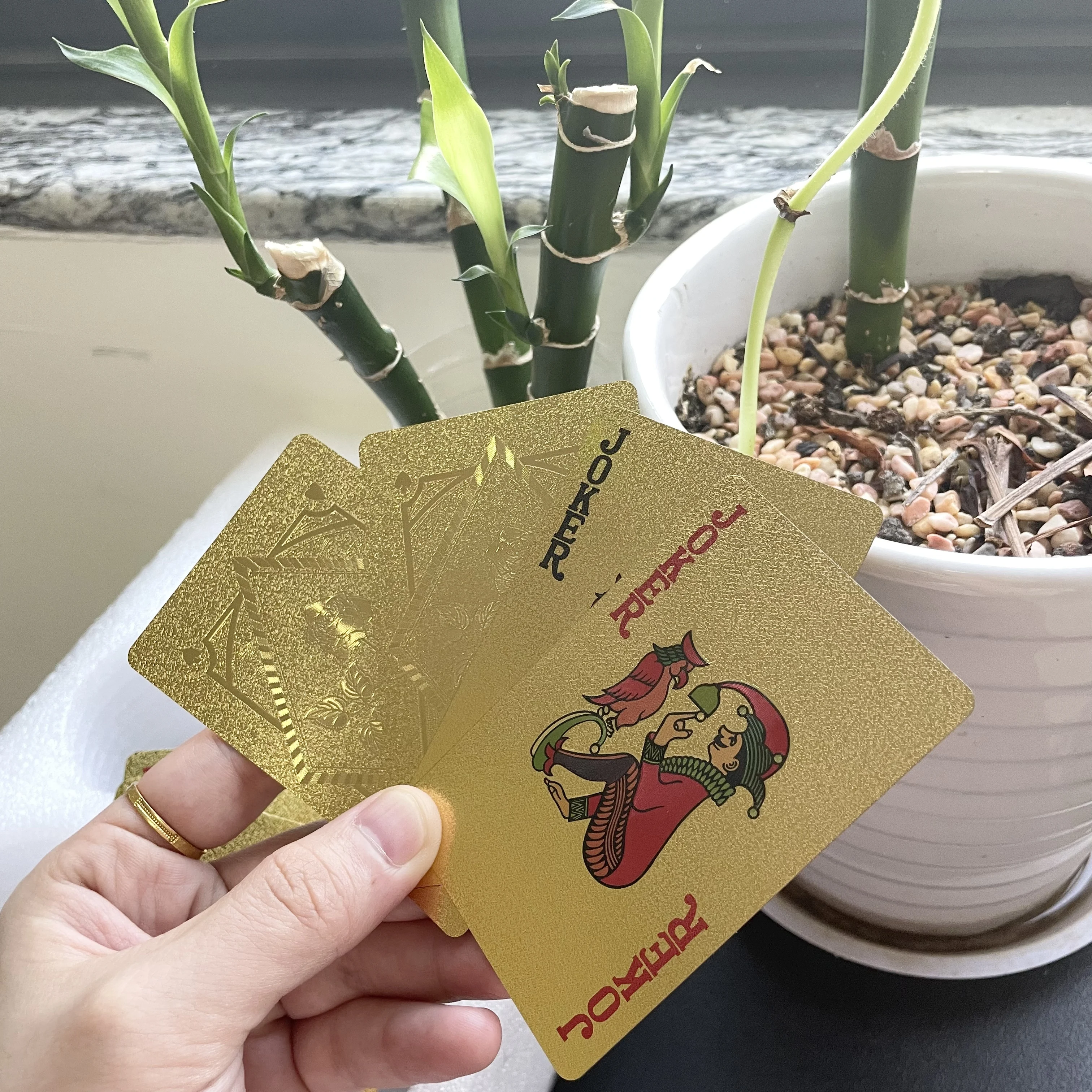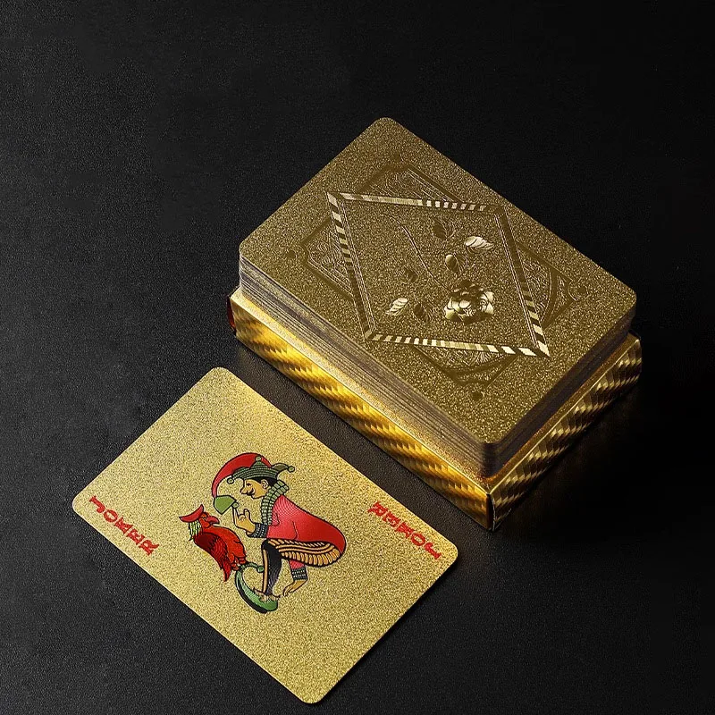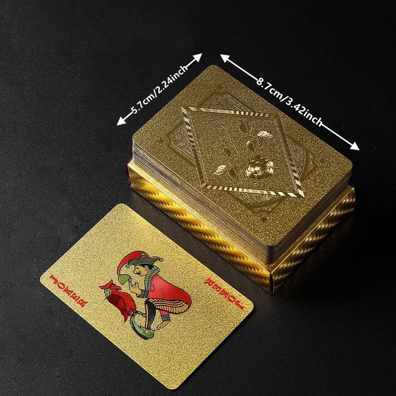 קלפי פוקר גולדן פויל עם דמות גולגולת, עמידים במים, עשויים מפלסטיק PVC, קלפים קסמים למשחקי הימורים, ניתן לשטוף, גמישים ושימוש
