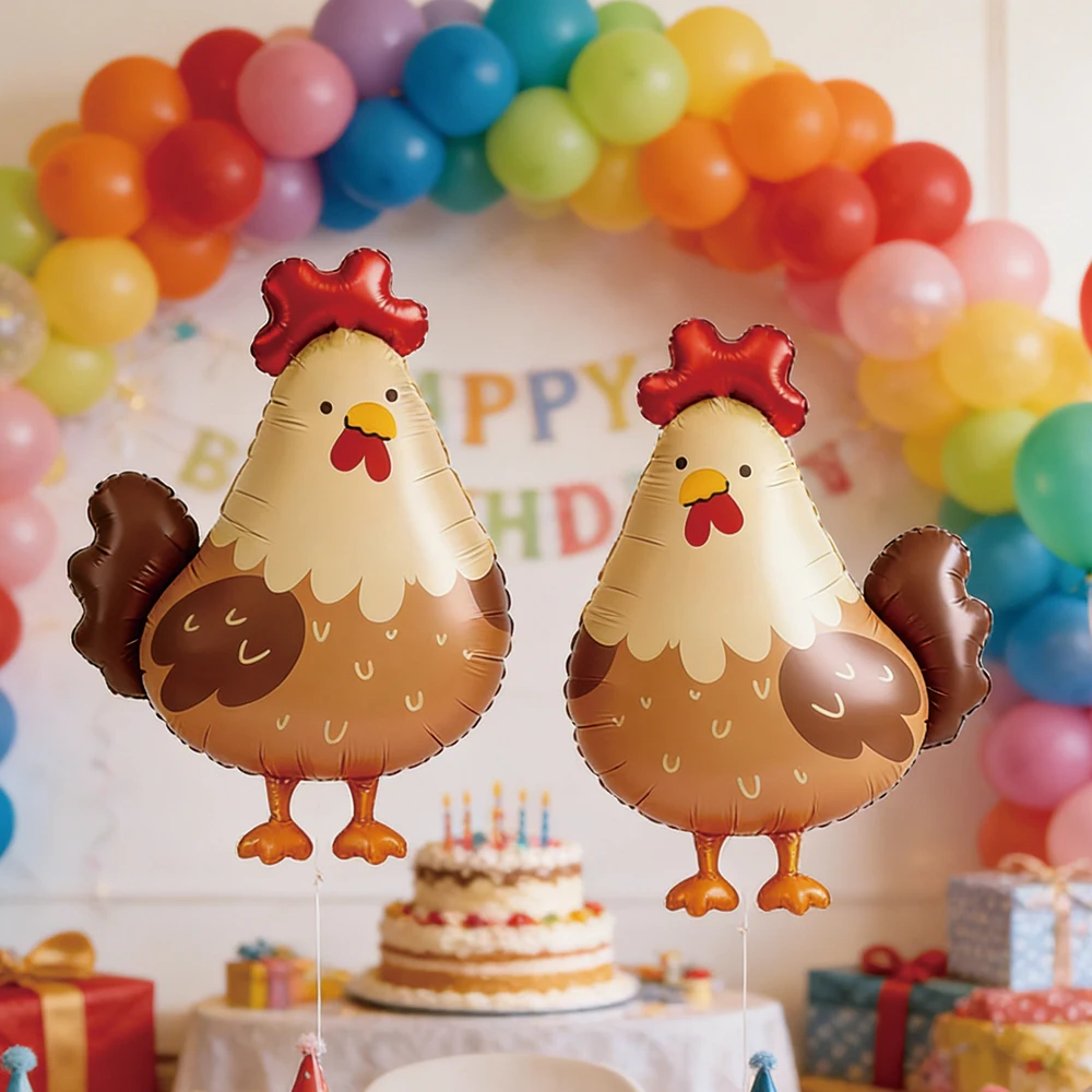 2 יחידות בלון עוף מצויר, בלון חיות גדול וחמוד מנייר אלומיניום, תרנגול חדשני לקישוט מסיבות יום הולדת וחתונות, מתנות