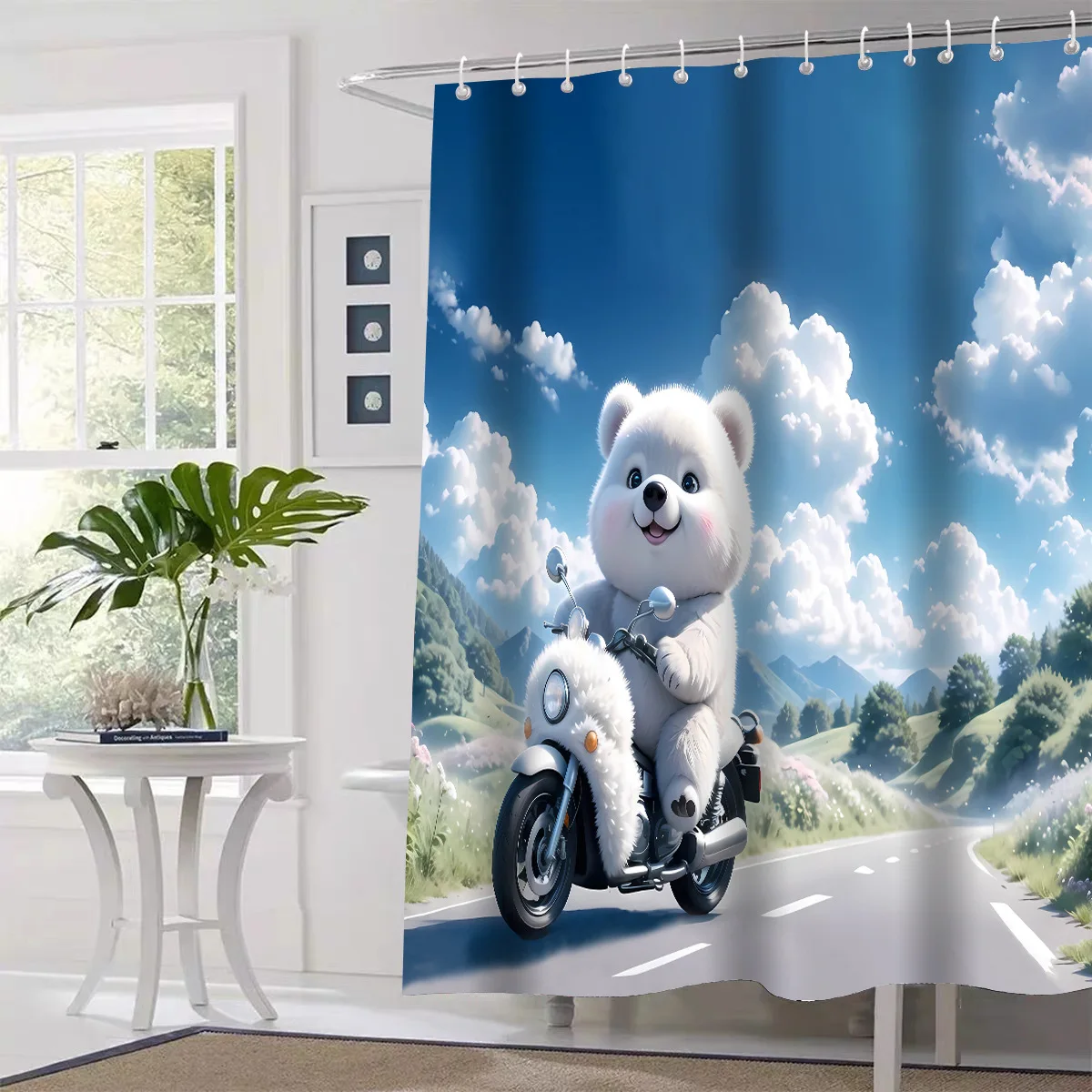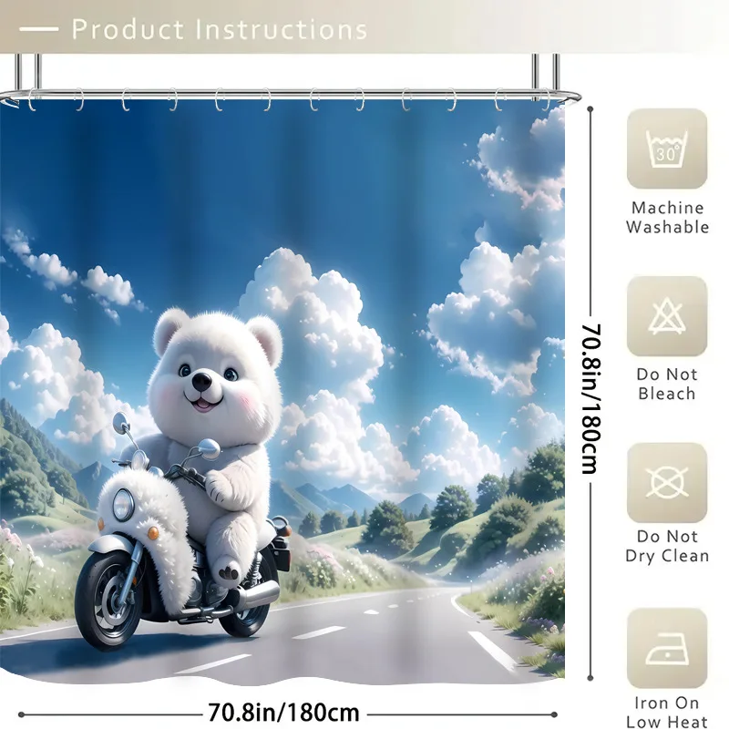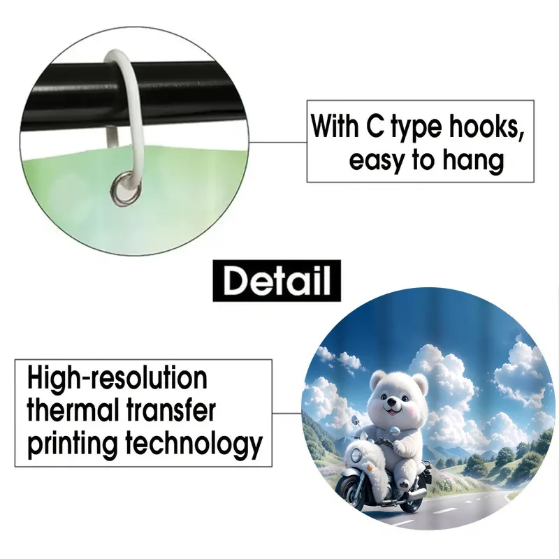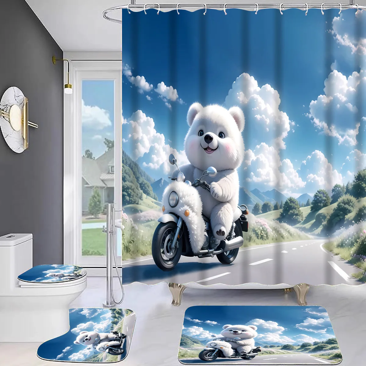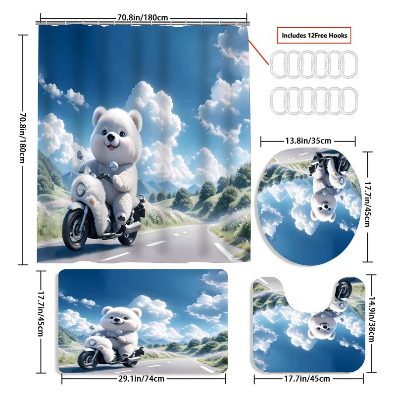 סט ארבעה חתיכות מותאמות אישית של וילונות מקלחת עם דפוס תמונה של דוב לבן גדול עמידים במים לחדרי אמבטיה