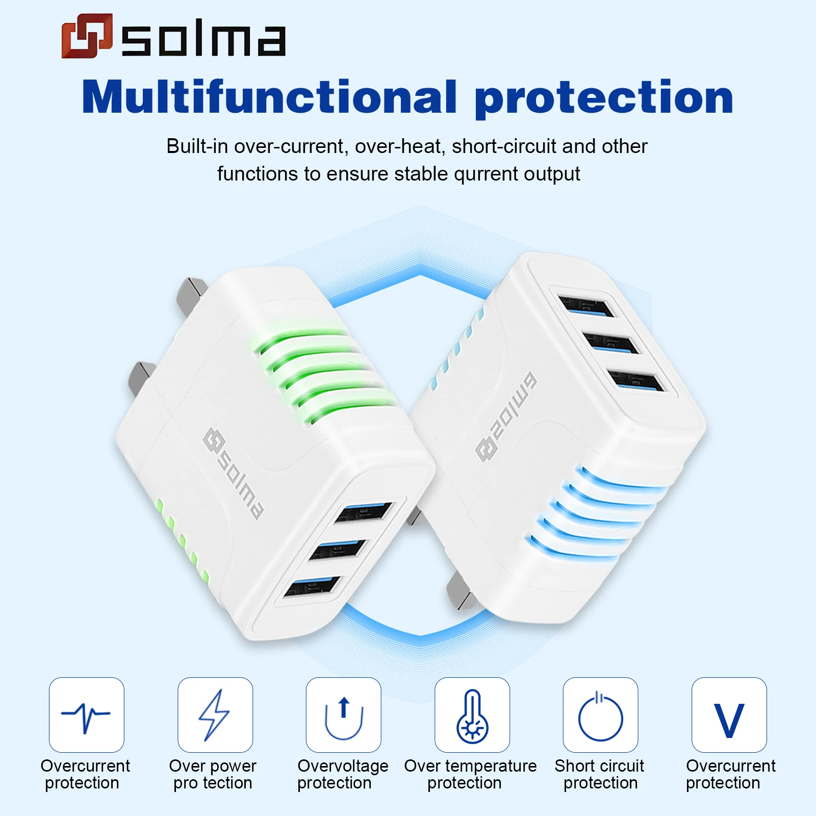מטען טעינה LED סטנדרטי בריטי חדש עם 3 יציאות USB לטלפון נייד מטען נסיעות מתאם בסגנון אוניברסלי
