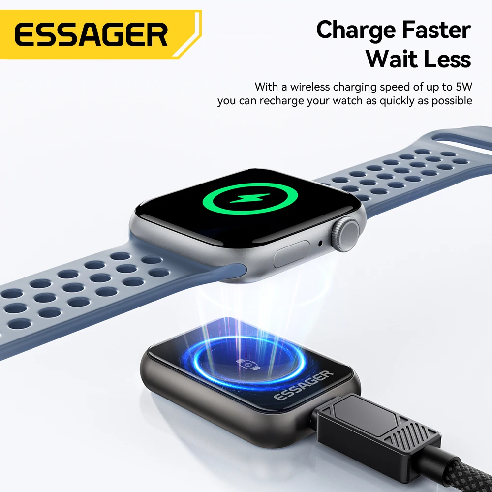 Essager 5W מטען שעון אלחוטי מגנטי נייד עבור Apple Watch S2-S11 Series SE Series Ultra Series Type-C/Lighting