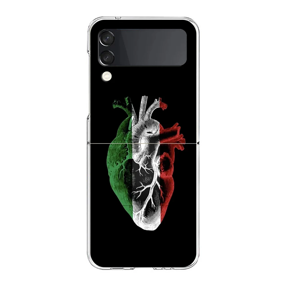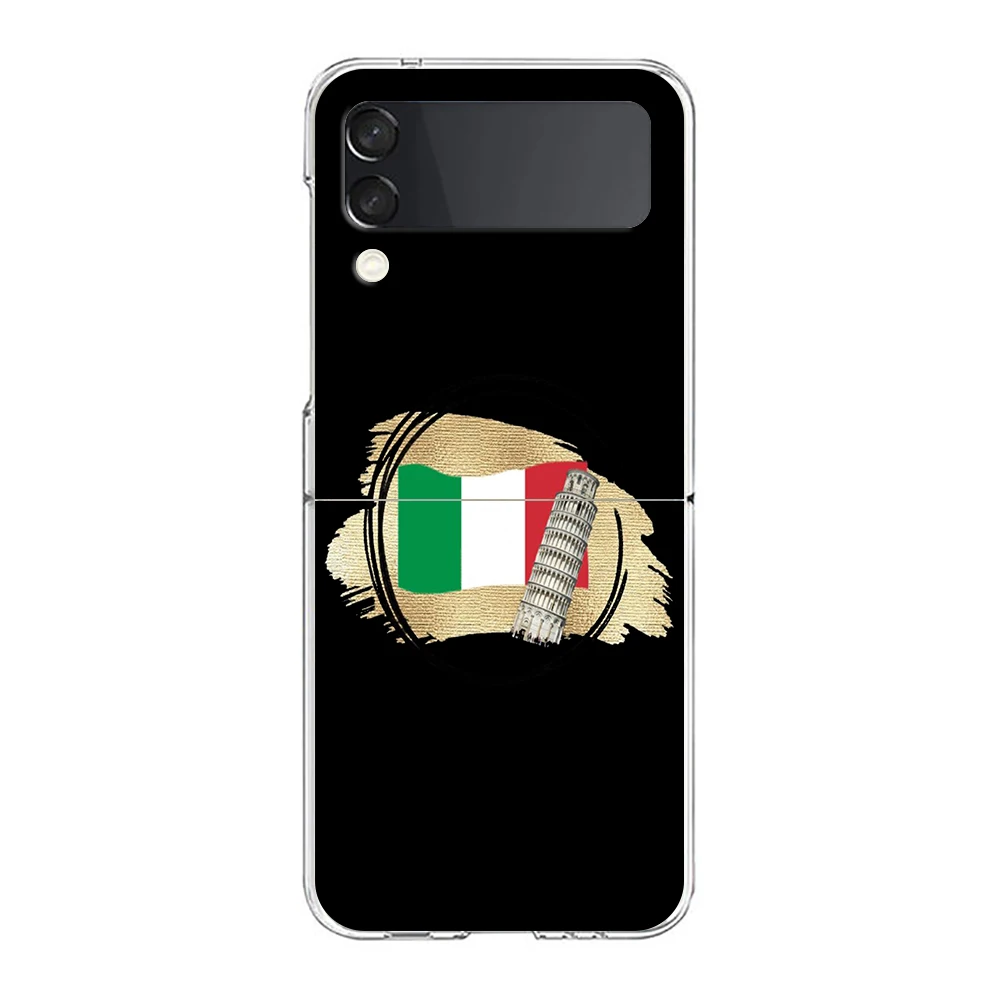 כיסוי טלפון עם דגל איטליה עבור Samsung Galaxy Z Flip 3 4 5 6, קיפול שקוף, מארז קשה מאוד מפלסטיק PC עבור Galaxy Z Flip 3 5 6, כיסוי שקוף