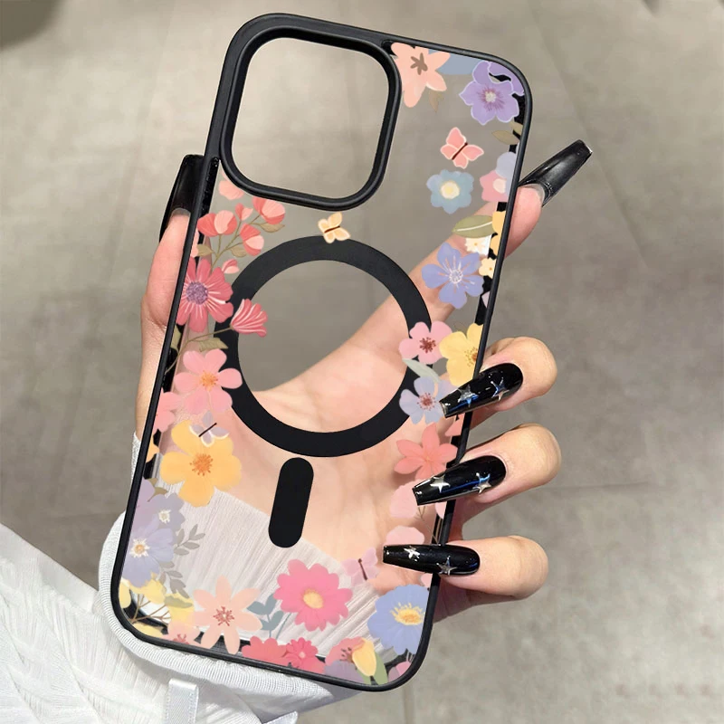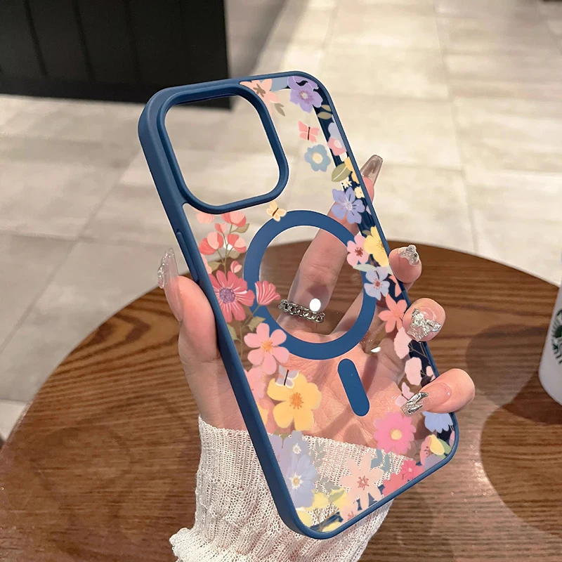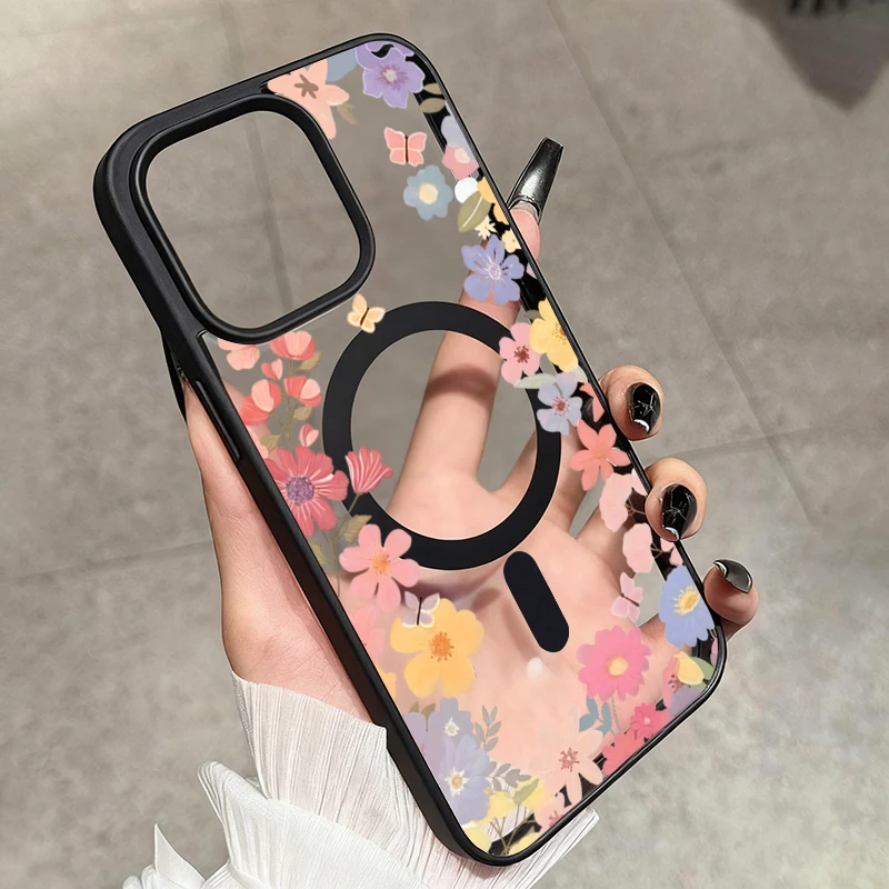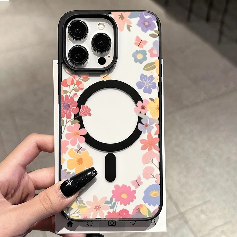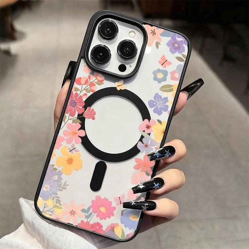 כיסוי טלפון עם הדפס פרחים קטנים לאביב לאייפון 17 16 15 14 13 12 11 פרו מקס, כיסוי מגנטי לאייפון 16 פלוס 17 אייר 16E פונדה