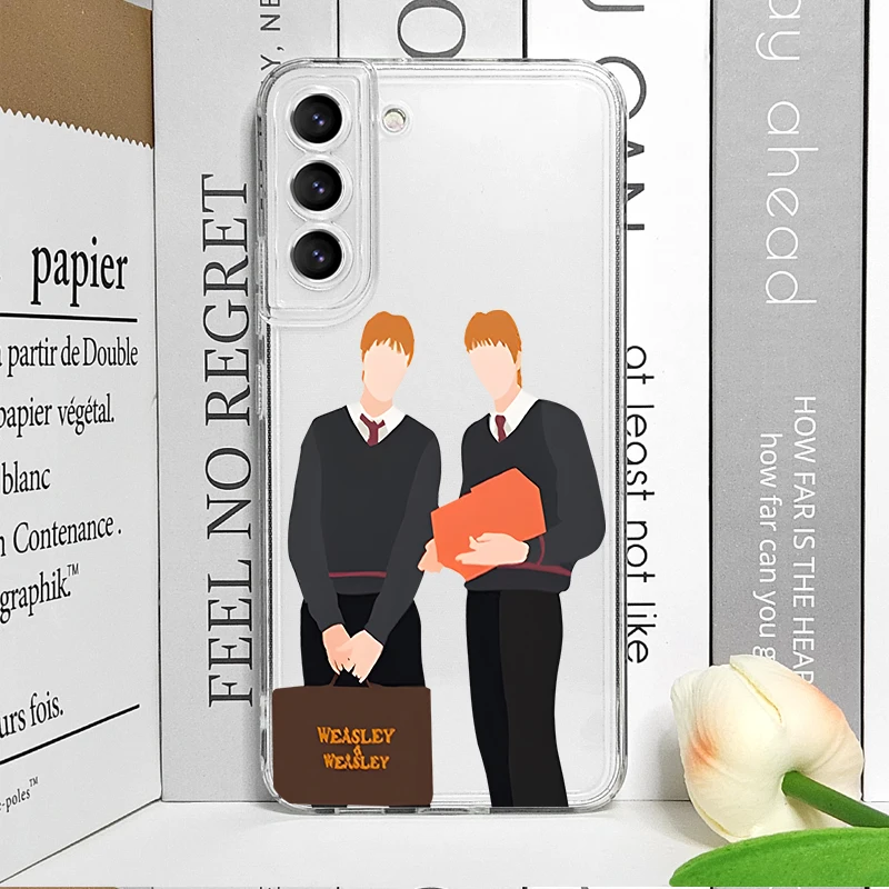 כיסוי טלפון שקוף למכשיר Samsung Galaxy S21 S22 S23 S24 S25 FE Plus Ultra 5G Weasley Twins עם דוגמת Draco Malfoy