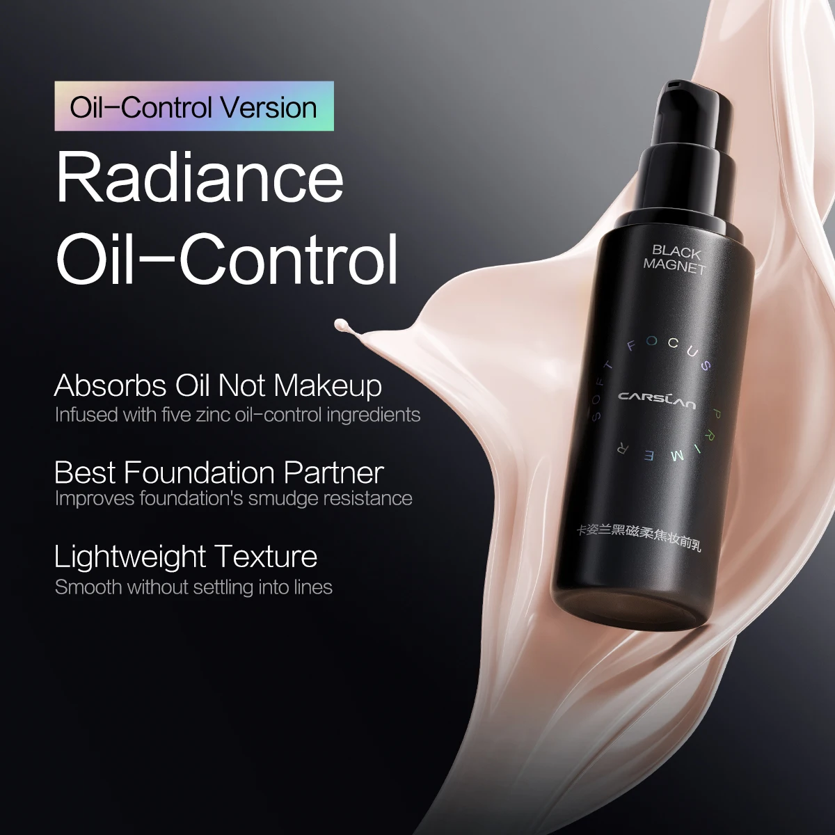בסיס איפור עם מגנט שחור CARSLAN, מתמקד רך, שליטה על השומן, החזקה לאורך זמן, הפחתת נקבוביות, אנטי-אבק, חלק, לא מדביק