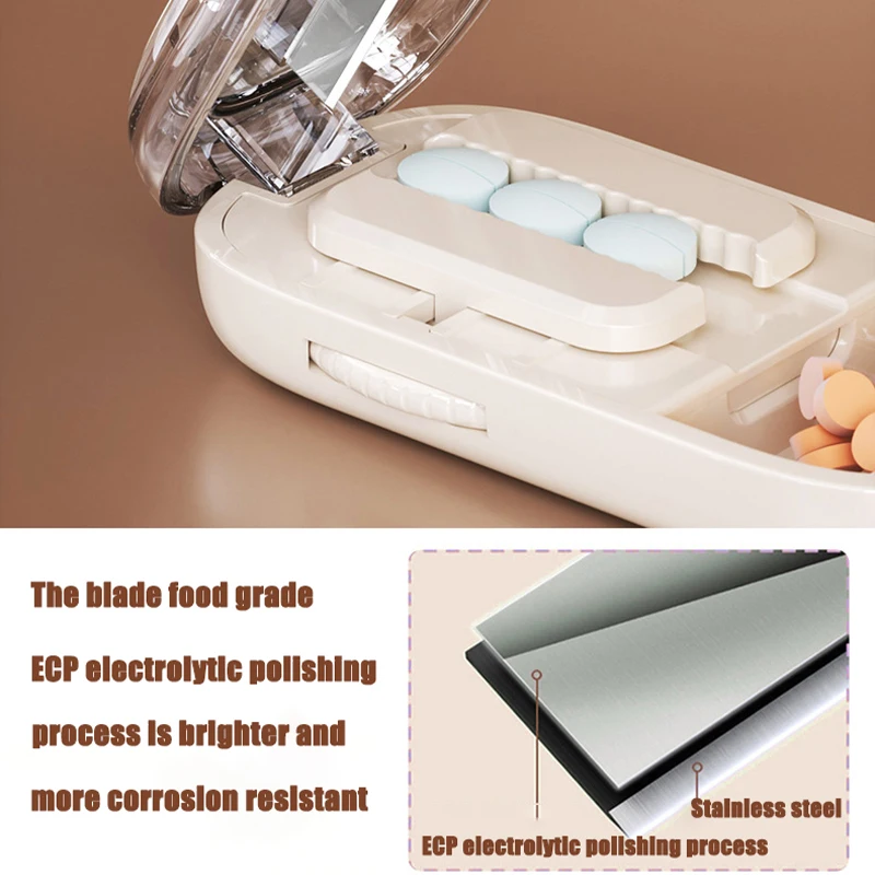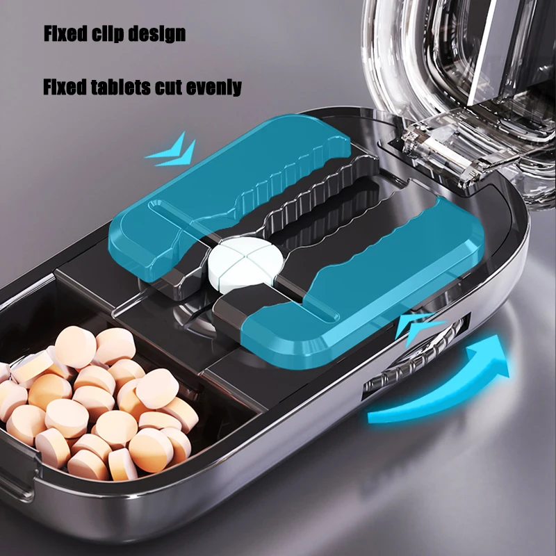 קופסת אחסון ניידת לחיתוך תרופות, טבליות ותרופות עם מחיצה נגד אבק