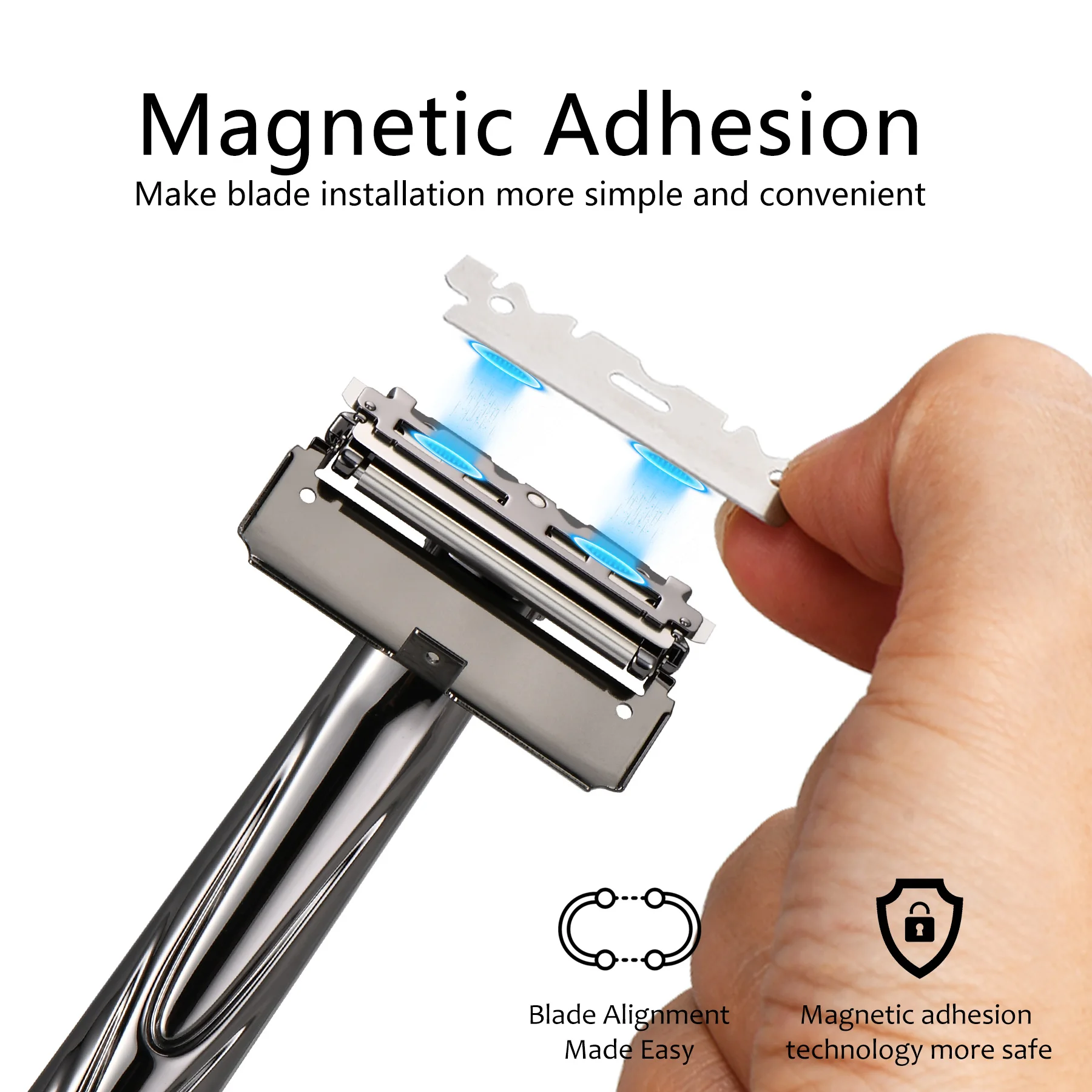 מכונת גילוח בטיחות Shavcooo GP500 Glide 5.0 Pro מפלדת אל-חלד עם גלגל מתנה לגברים עם תיק נסיעה לטיפוח הזקן