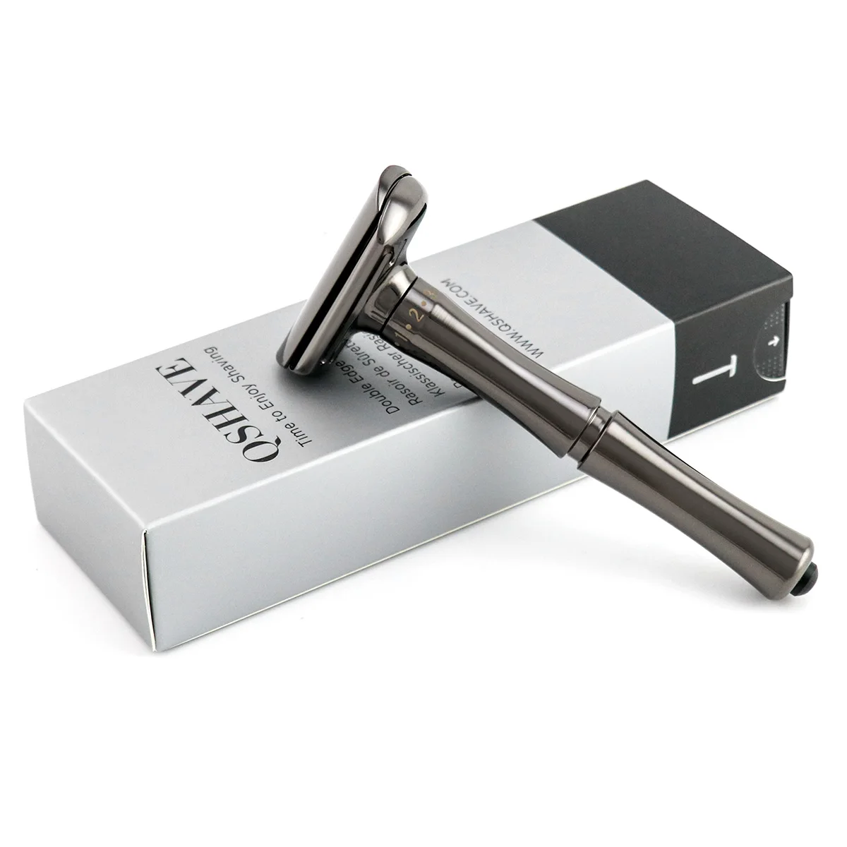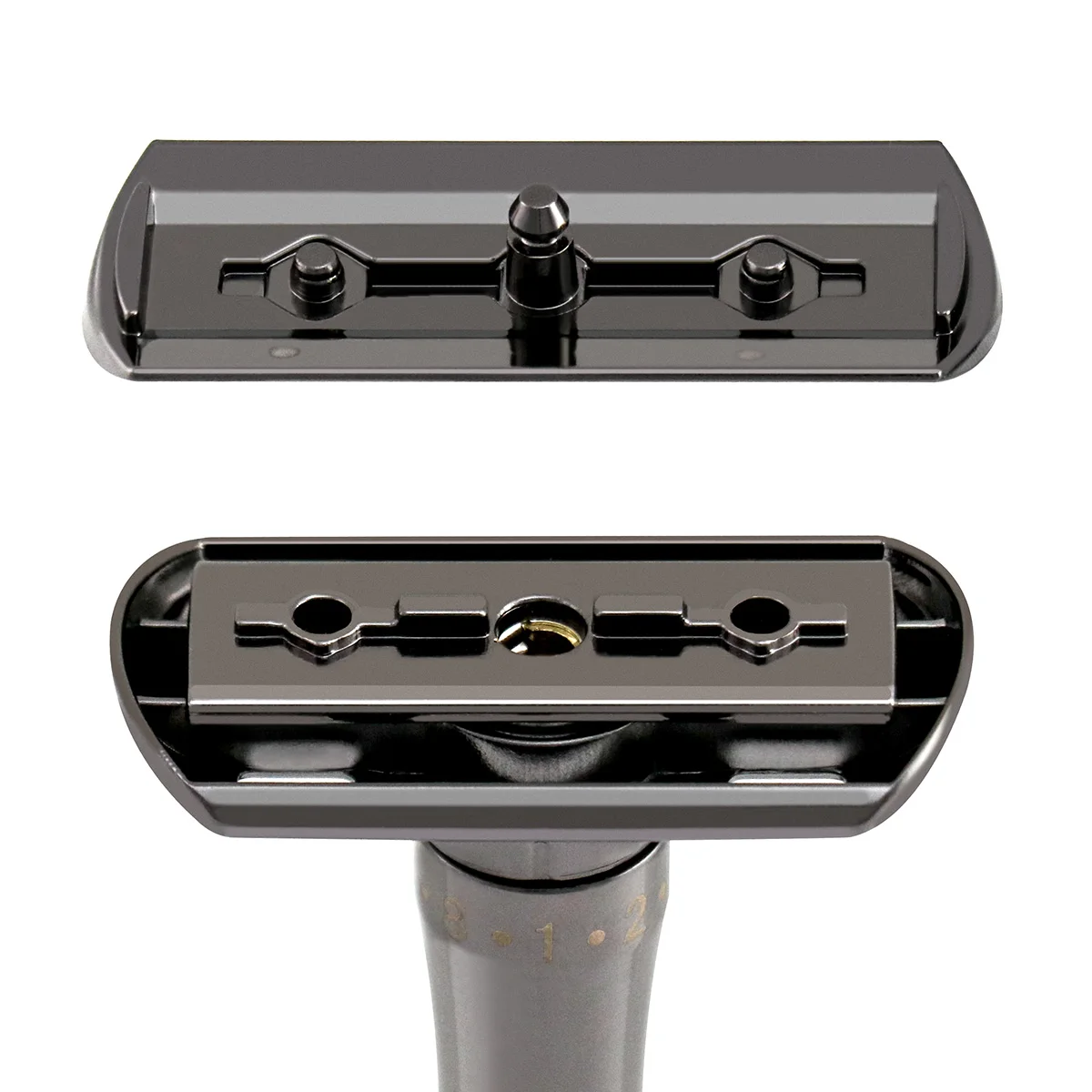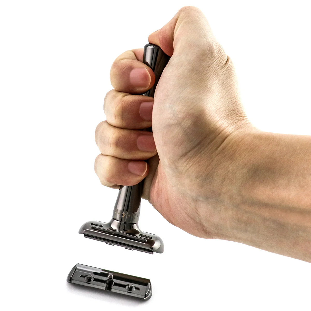 QShave מט שחור מתכוונן בטיחות תער בטוח יותר לחץ כדי לפתוח להב החלפת מערכת 1 תער 1 להב לרשות מקרה & 5 להבים