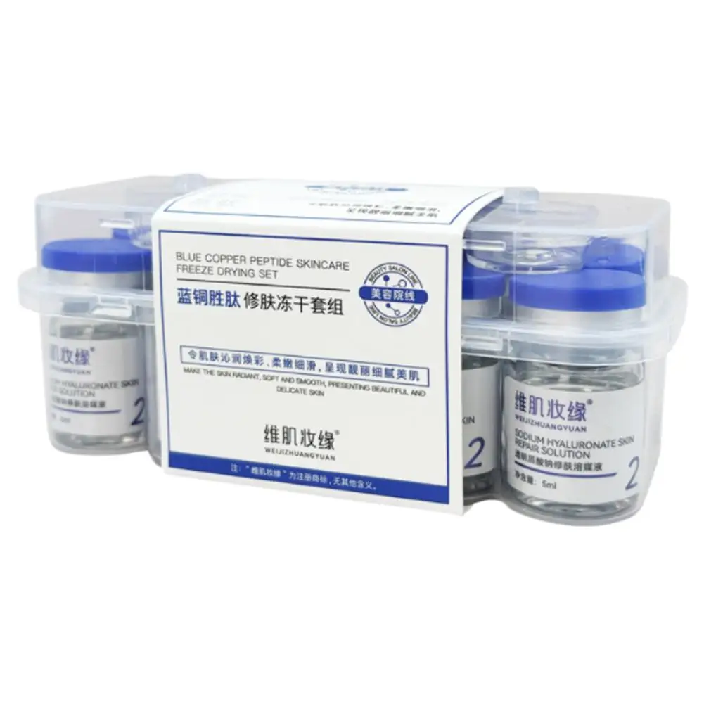 אבקה מיובשת בהקפאה של GHK-CU, ערכת תיקון עור נגד הזדקנות, משפרת גמישות, מטשטשת קמטים עדינים ותומכת במחסום לחות.