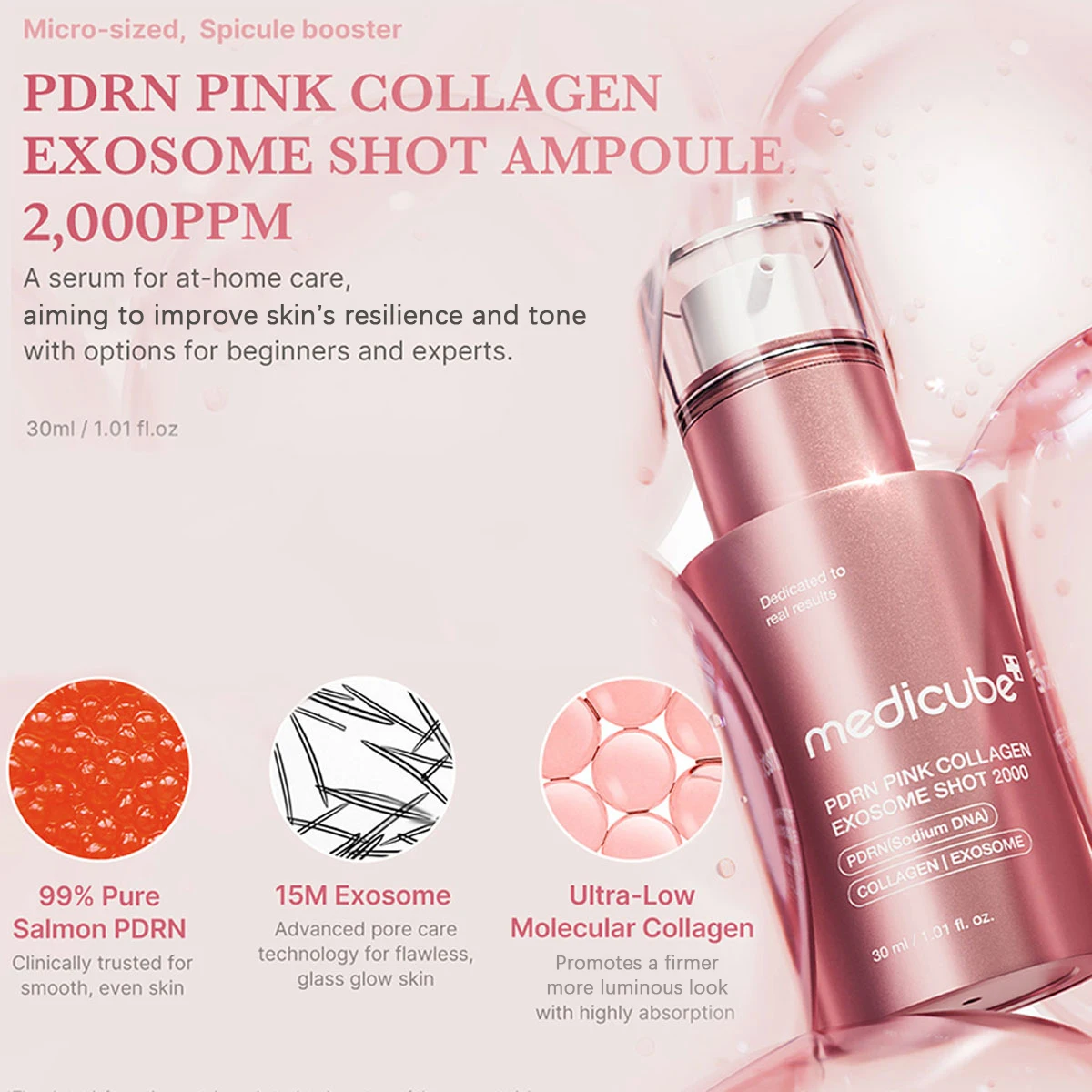 מזרק קולגן ורוד PDRN של Medicube, חלק ונספג במהירות, מסייע לשמור על איזון לחות העור, K-Beauty, איפור קוריאני