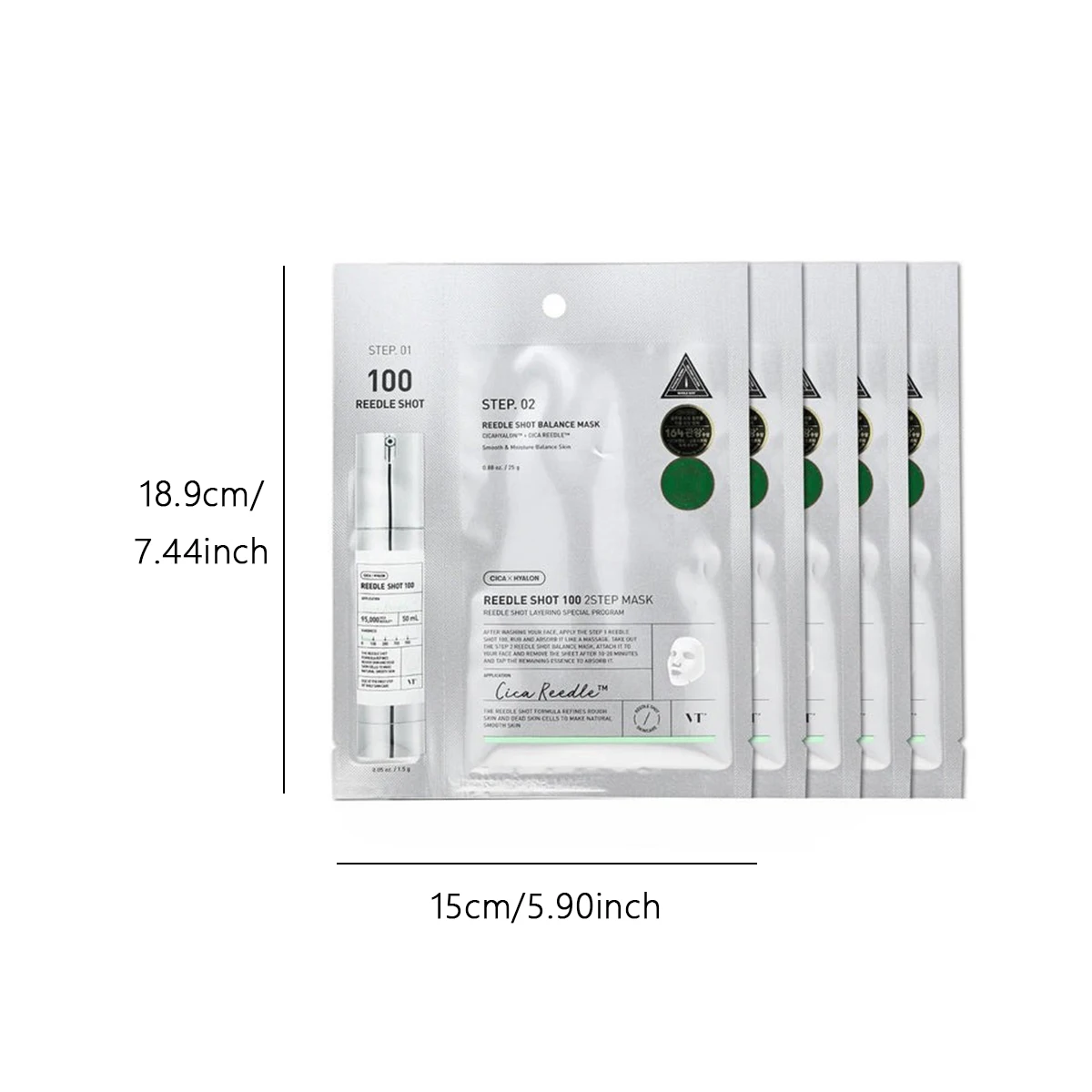 מסכת VT Reedle Shot 100 דו-שלבית*5 יחידות, מסכת התאוששות אינטנסיבית, מסכת זוהר, מסכת טיפוח להחלקה, K-Beauty, איפור קוריאני