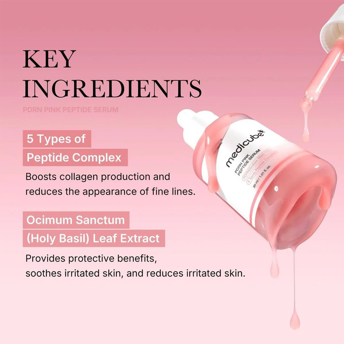 סרום פפטידים ורוד PDRN של Medicube Salmon DNA, טקסטורת סרום, מרכיבי תיקון מורכבים, מרים ומחזק, K-Beauty, איפור קוריאני