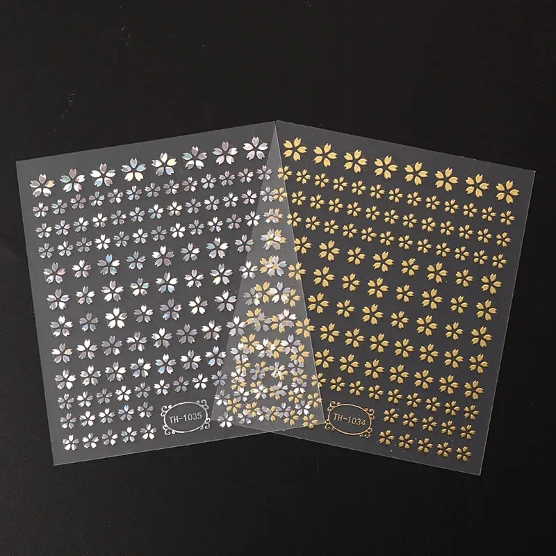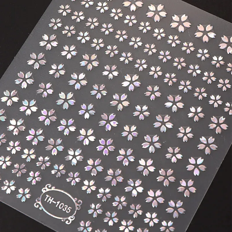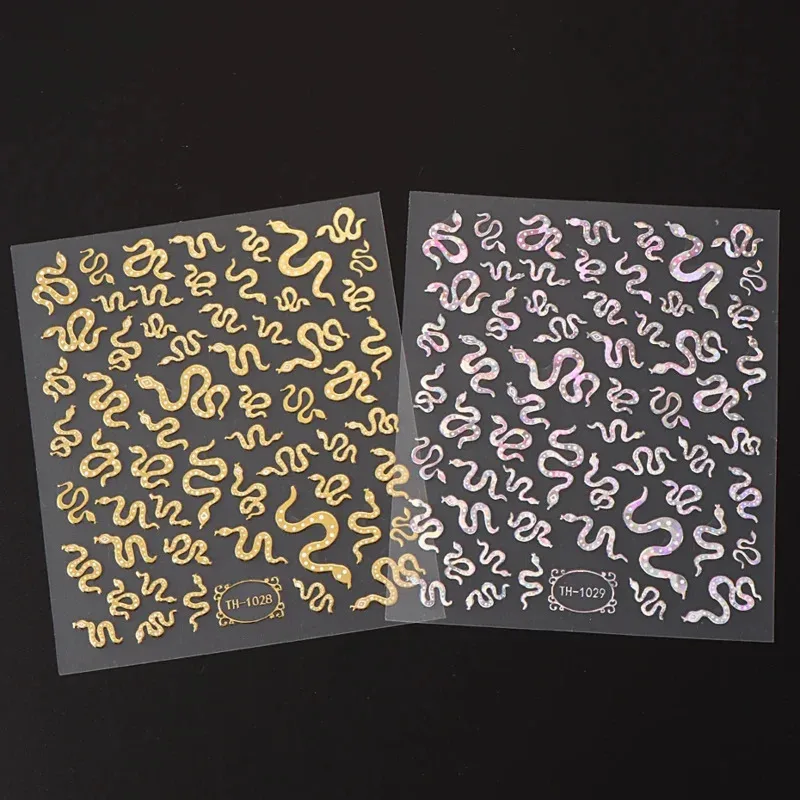 מדבקות ציפורניים תלת מימדיות בלייזר סאקורה - עיצוב עור נחש הולוגרפי, מדבקות אמנות ציפורניים להעברת מים למניקור