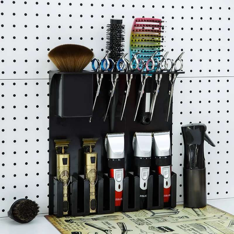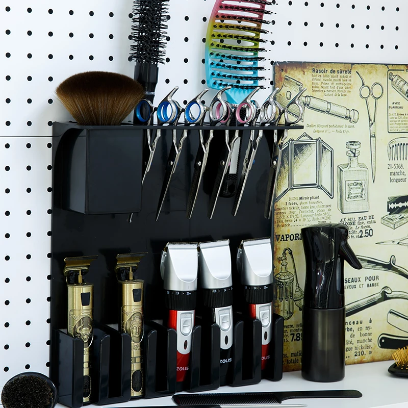 כלי מקצועיים למספרה תלויים על הקיר, מגש כלי עבודה לסלון, תיבת אחסון למספרה, מדף למסרק, ערכת גילוח שיער, מספר זקן