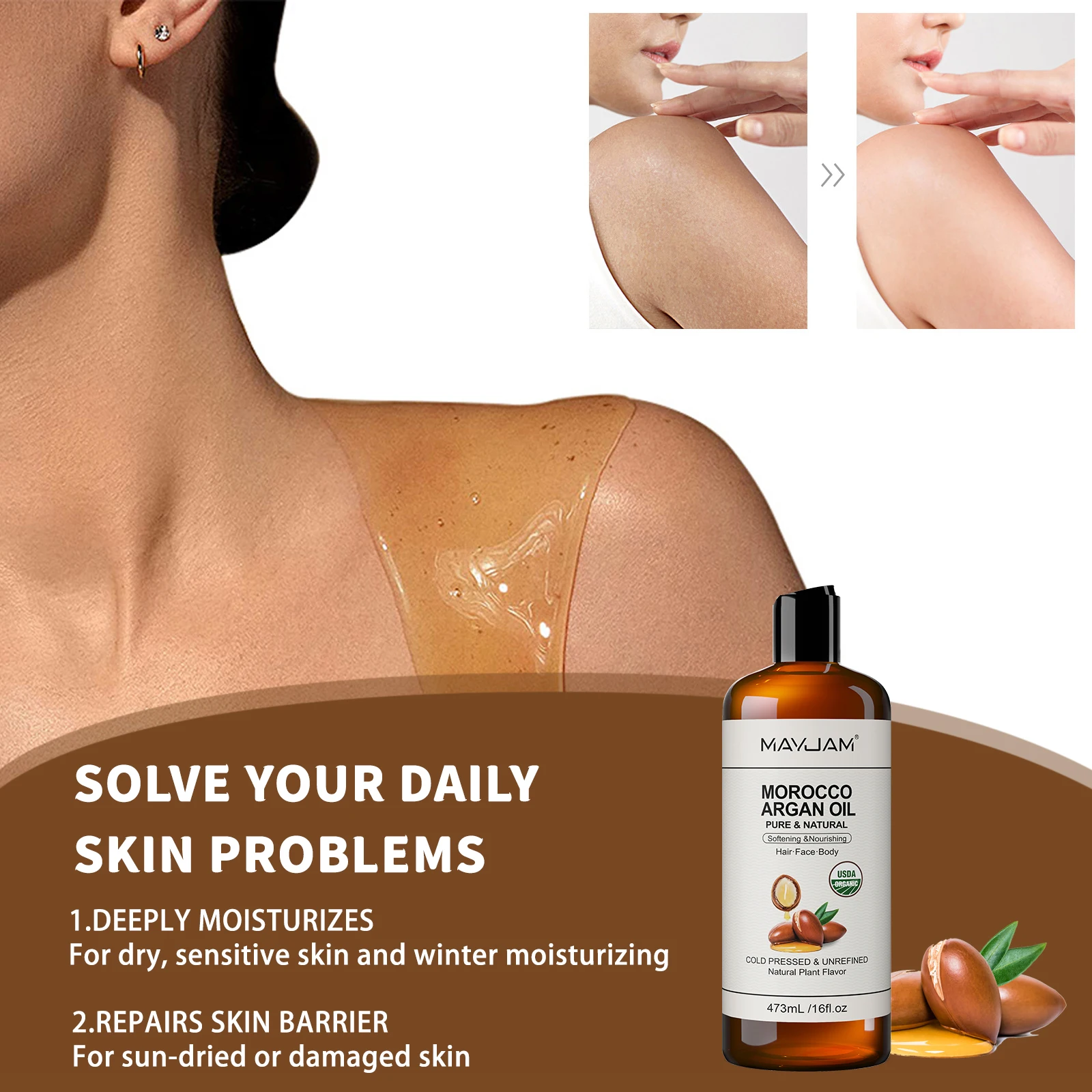שמן אורגני טהור מרוקאי לטיפוח השיער והקרקפת, מזין ומעניק לחות לעור