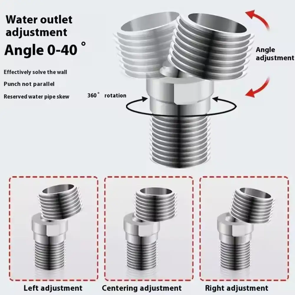 עיצוב זווית מתכווננת: מתאם זווית ברז המקלחת המתכוונן כולל זווית מתכווננת של 360 מעלות, המספקת גמישות אופטימלית למיקום ראש המקלחת או הברז שלך.