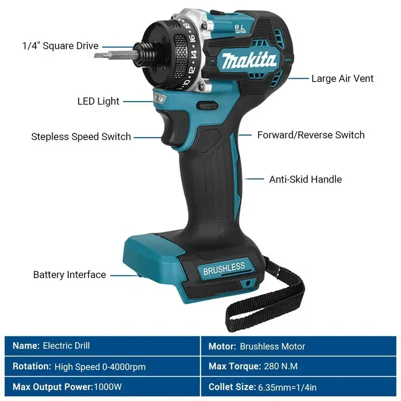 מקיטה 4000RPM מברג חשמלי ללא מברשות 3800IPM 180Nm מקדחה חשמלית לנהג 18V סוללה לאריחים מתכת עץ