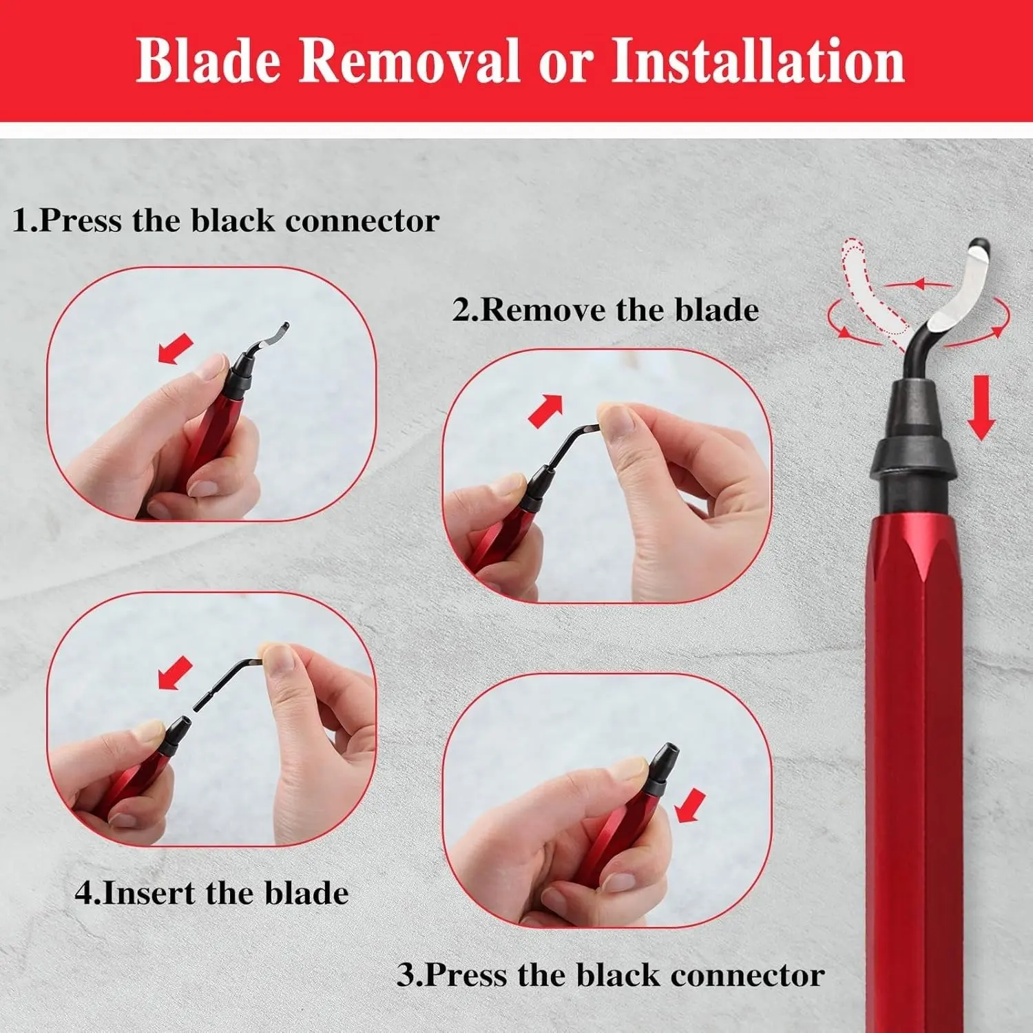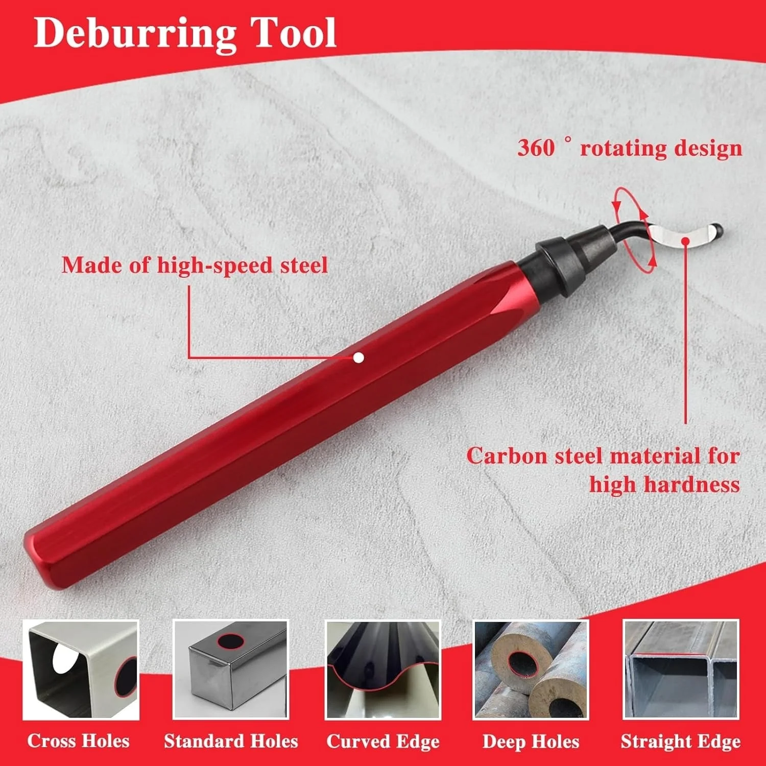 ערכת כלים להסרת שבבים עם ידית מתכת ו-21 להבים להסרת שבבים BS1010, כלי חיתוך קצוות להסרת שבבים עם ראש מסתובב 360 מעלות