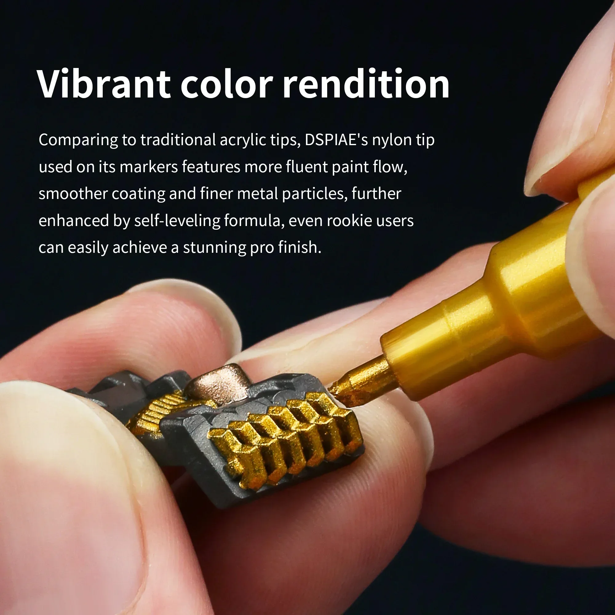 DSPIAE MKA עט מברשת סופר מתכתי ידידותי לסביבה על בסיס מים ראש רך רסיס זהב ורוד אדום כחול ירוק כתום