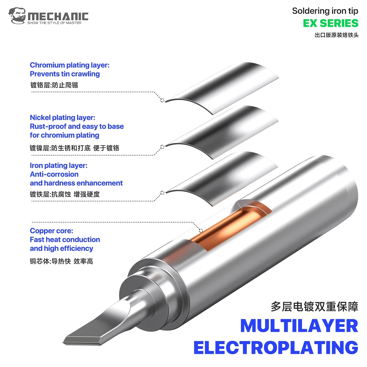 MECHANIC EX Series הולכת חום מהירה רב-שכבתית ציפוי אלקטרוליטי מובנה נוגד חמצון צינור נירוסטה קצה מלחם