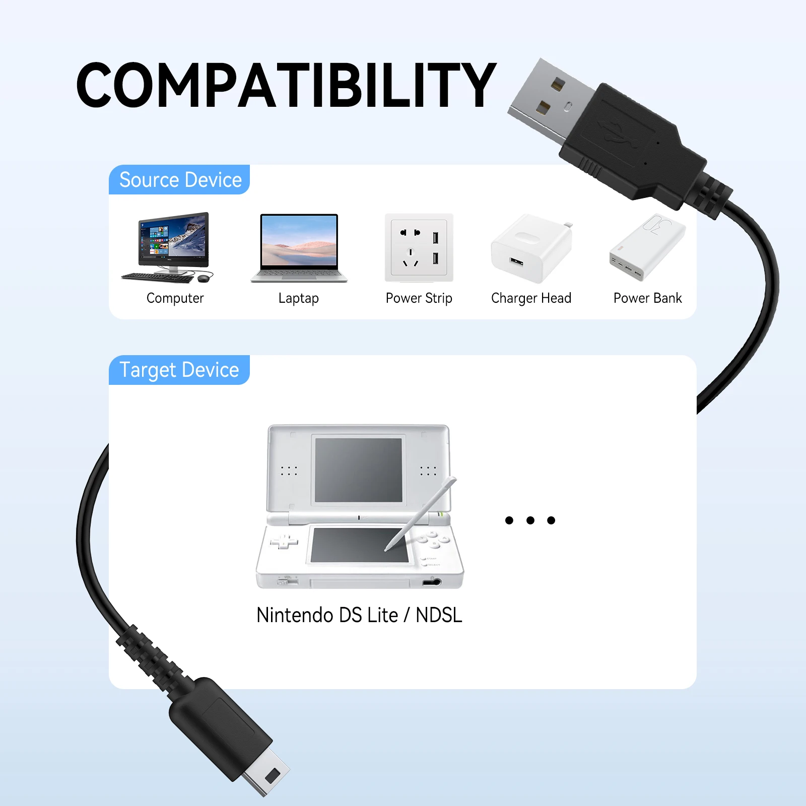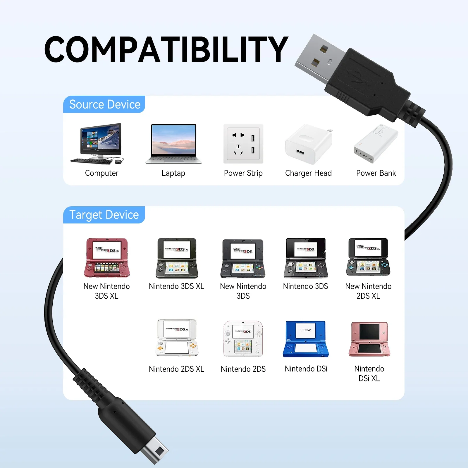 כבל מטען USB עבור Nintendo S Lite DSL NDSL כבל טעינה נתונים כבל חשמל עבור NDSi 3DS New 3DS XL LL New 2DS XL NDS GBA SP