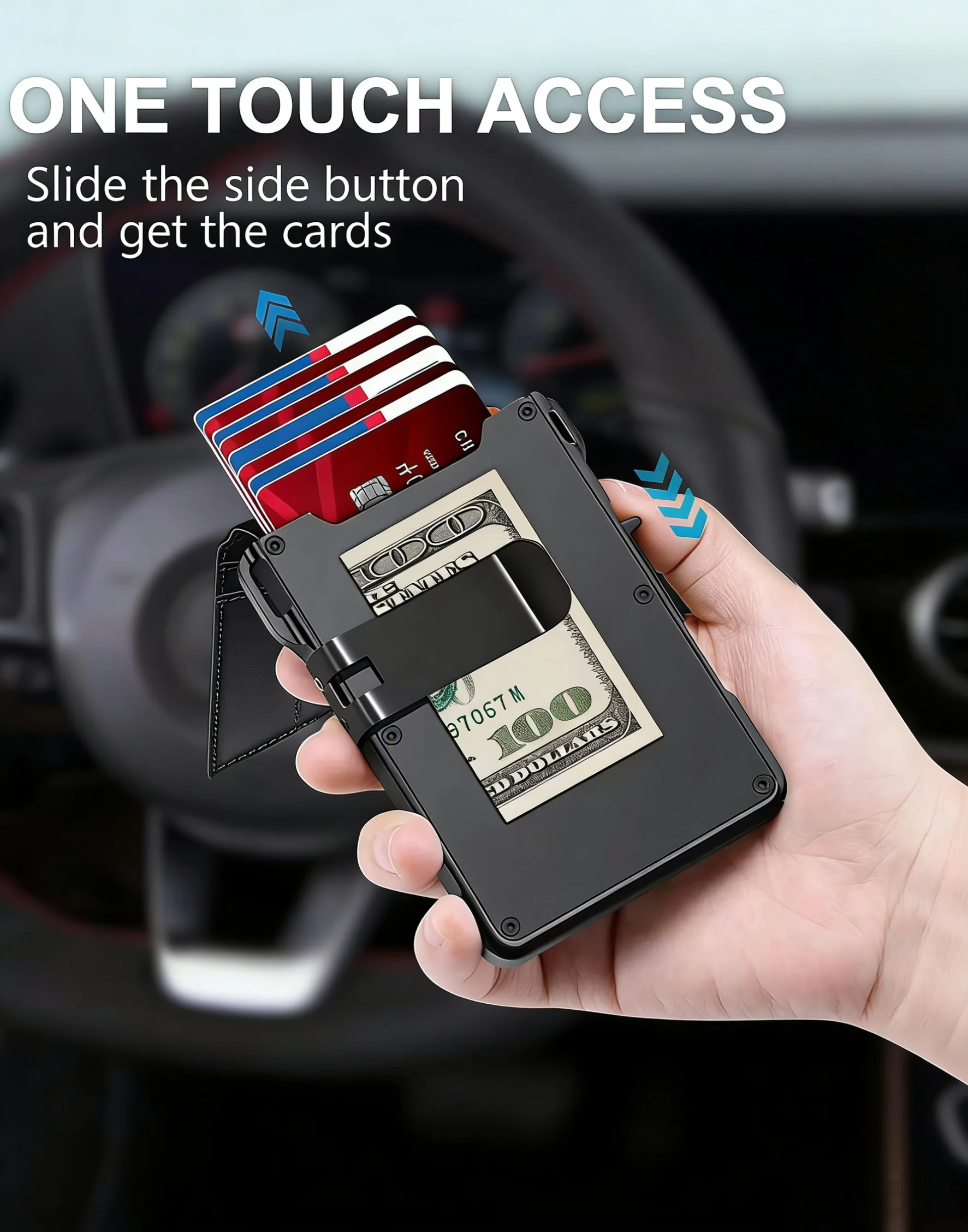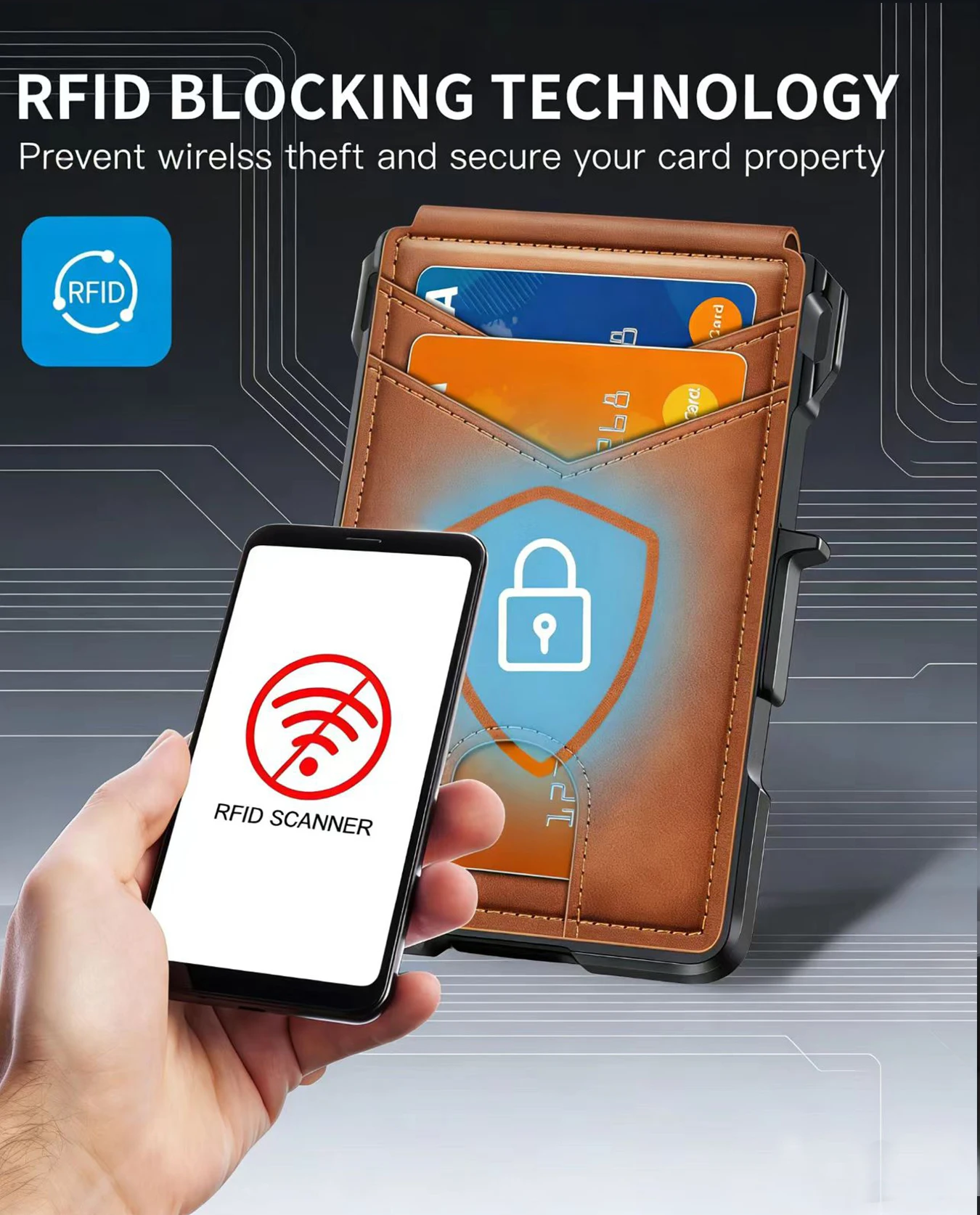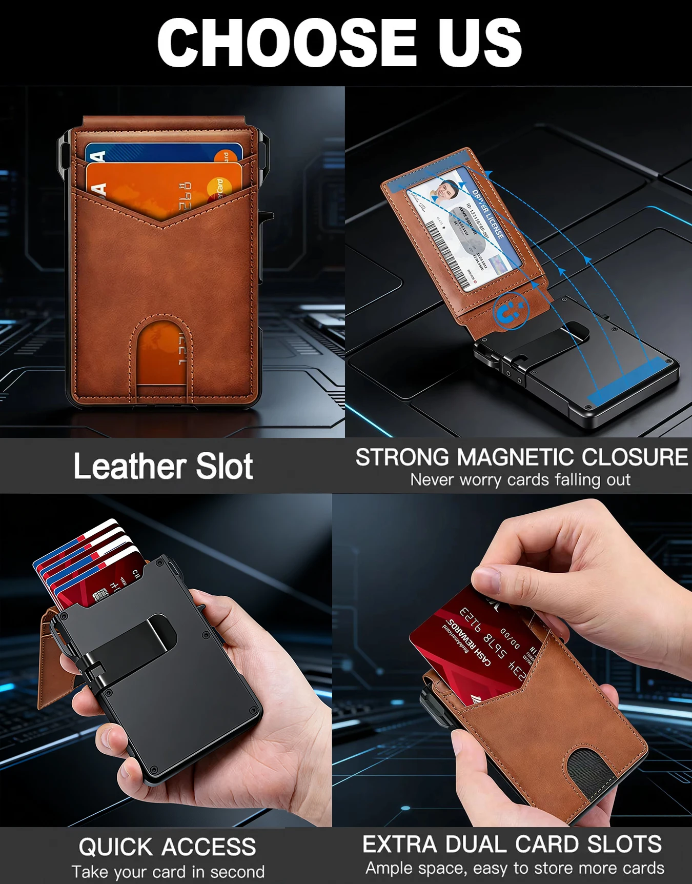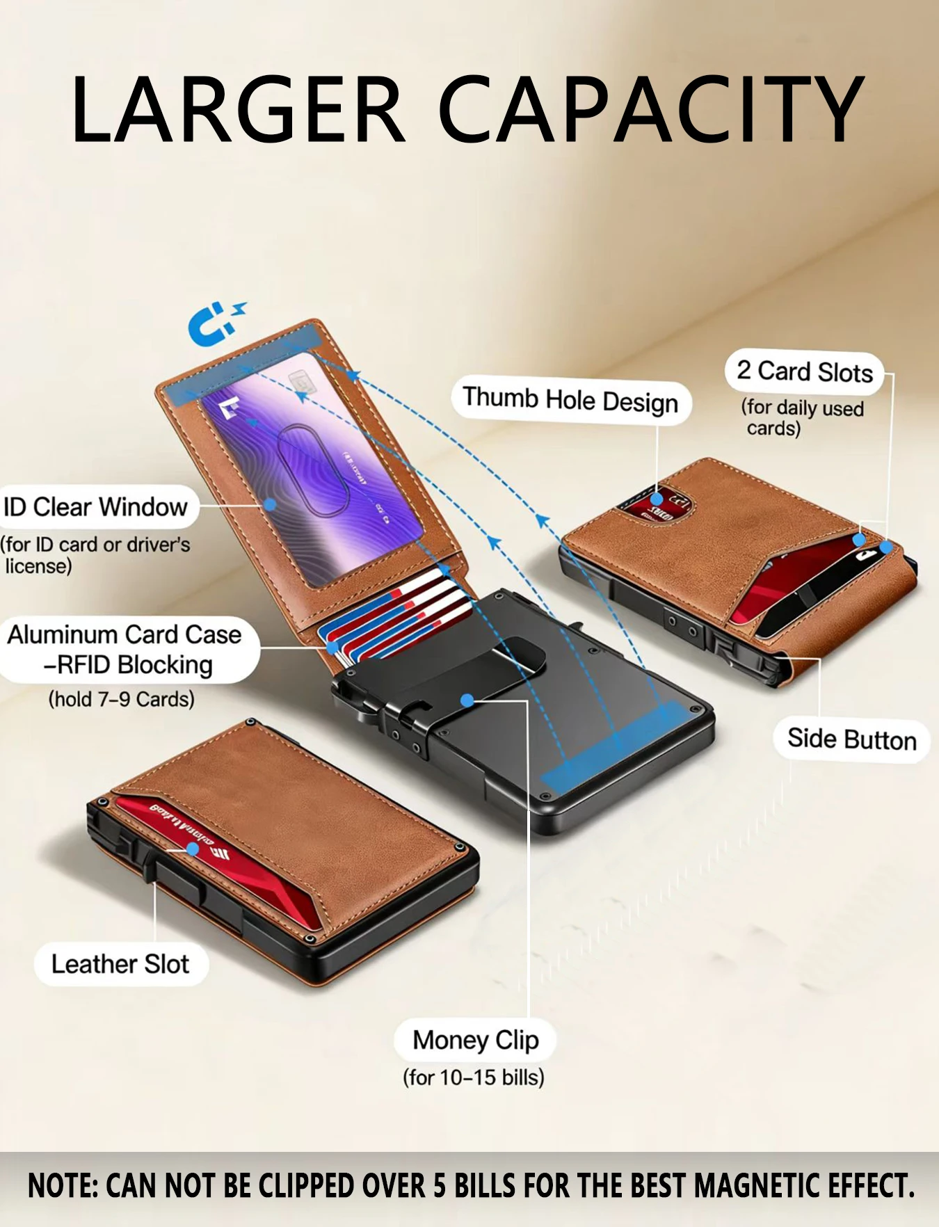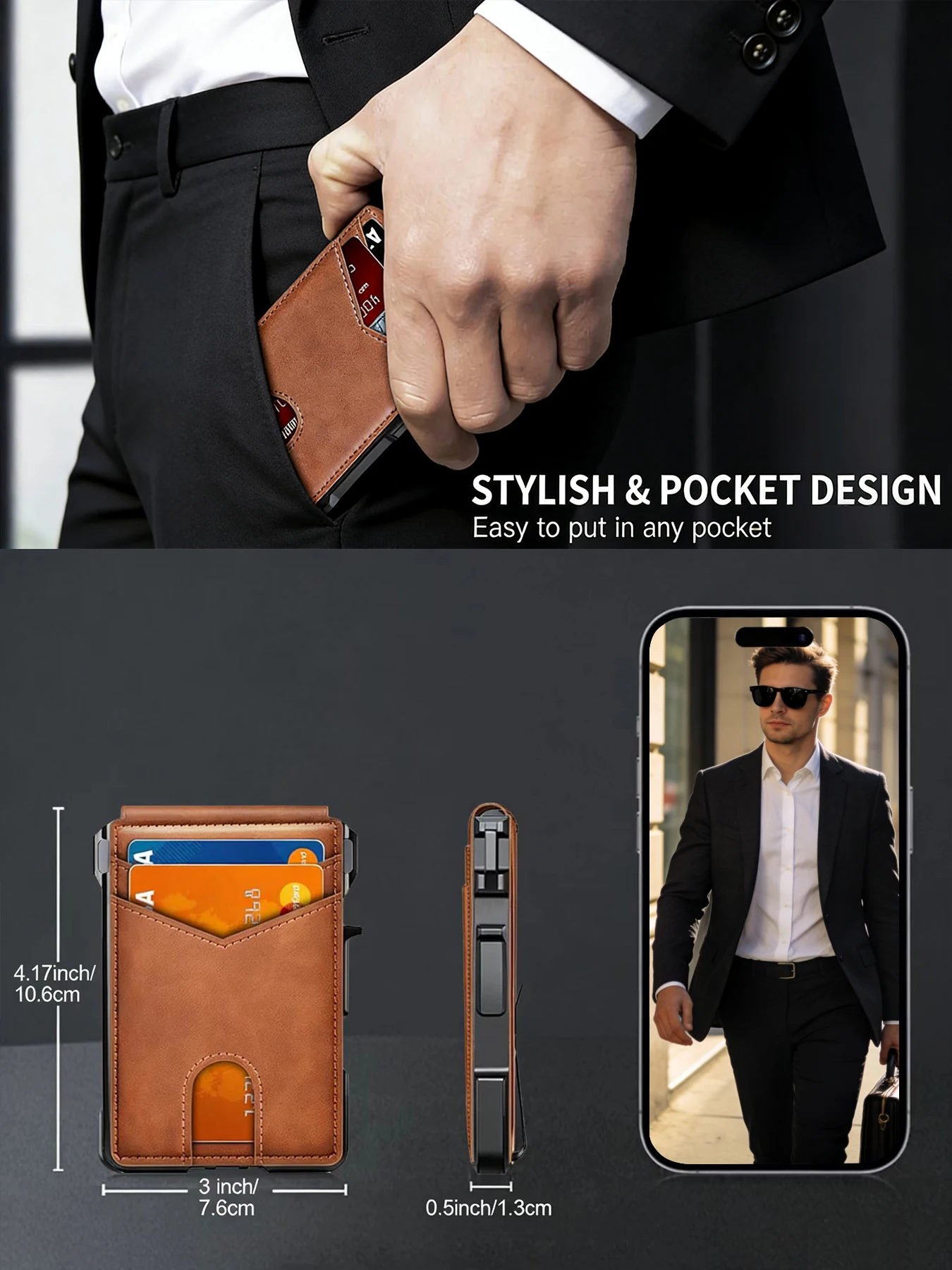 ארנק דק מינימליסטי לגברים עם חסימת RFID, מעור, מתקפל, לכיס קדמי, עם סגירה מגנטית קופצת, קליפס לכסף, מחזיק כרטיסים