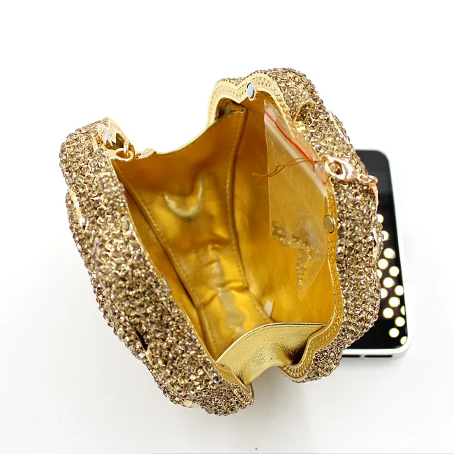 תיקי קריסטל מעוצבים בעיצוב ורוד מופנם, תיק רינסטון מתכתי ריק עם יהלומים למסיבות ואירועים לנשים