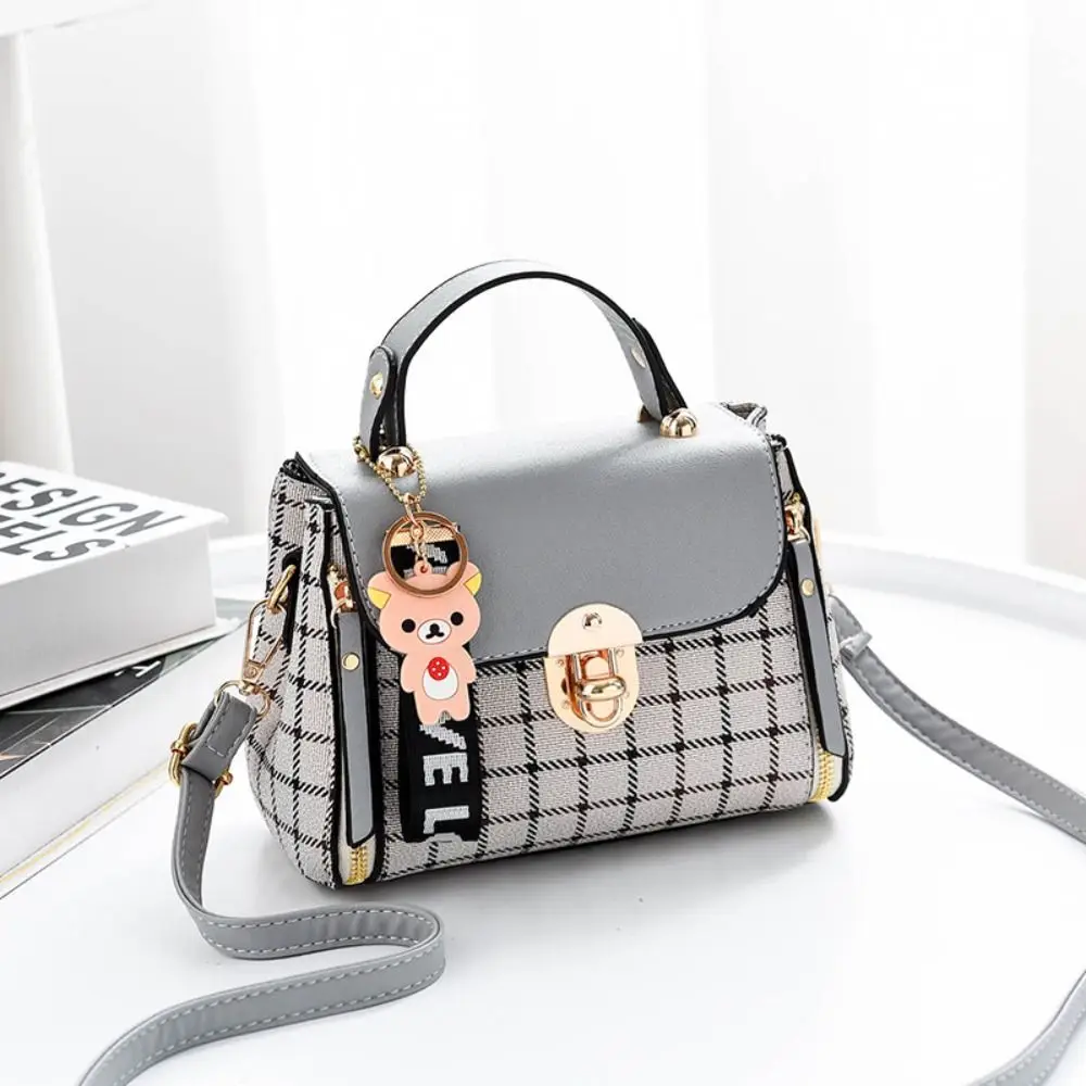 תיק אופנה דפוס משובץ תיק נשים אבזם דש שמלת תיק כתף נשים פו עור pu שק
