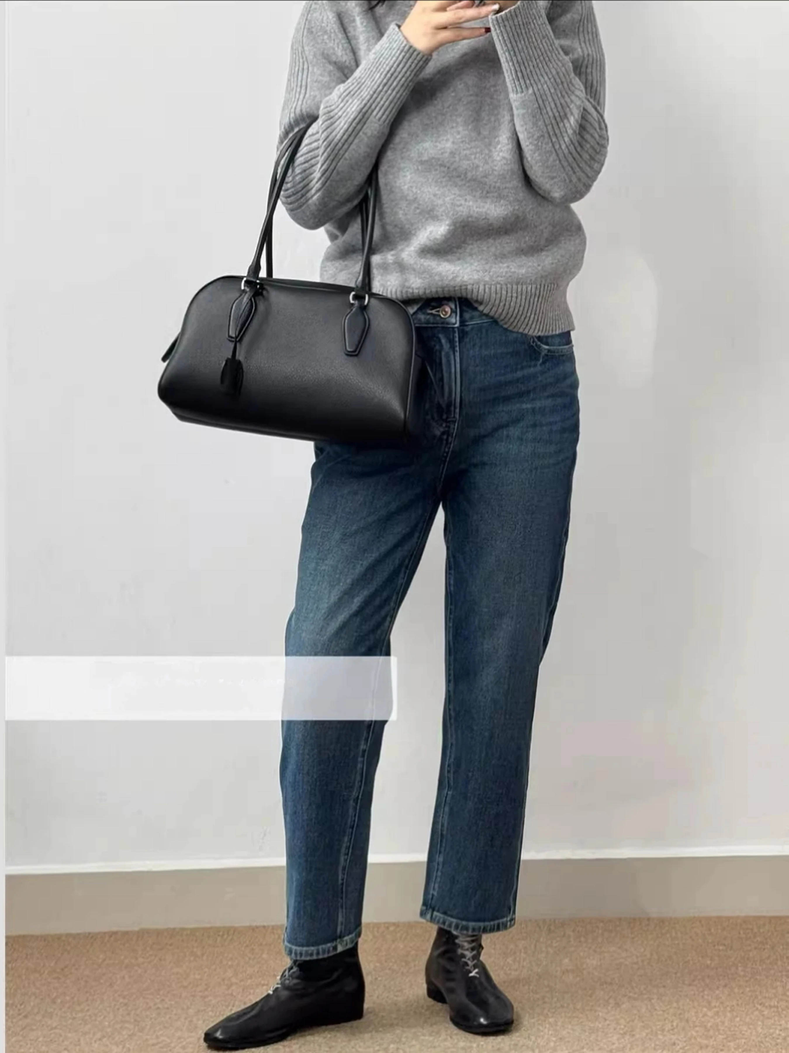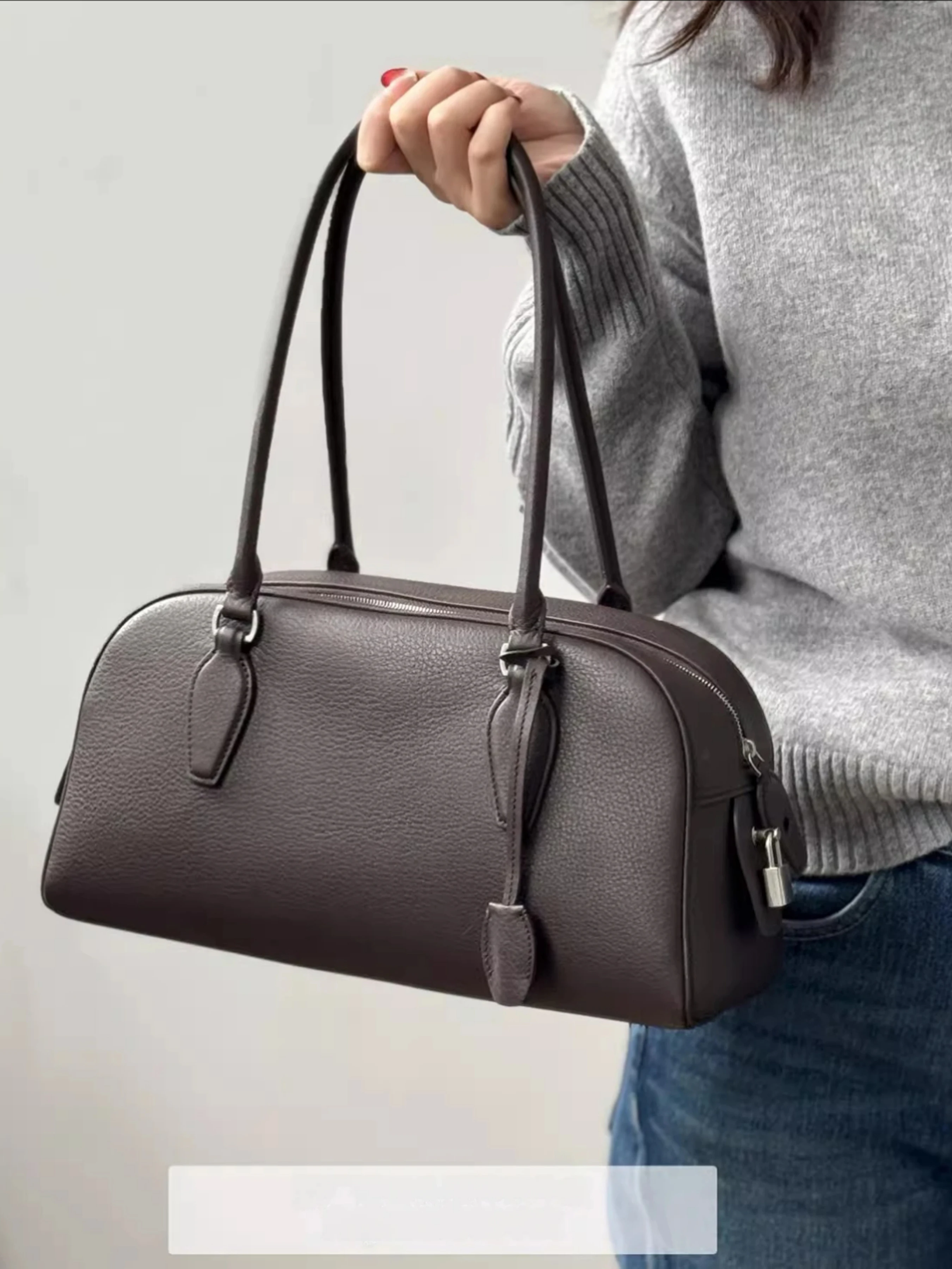 תיק בעיצוב נישה בסגנון צרפתי, תיק בולטינג בוסטון מעור פרה בשכבה ראשונה, תיק כתף יוקרתי לנשים