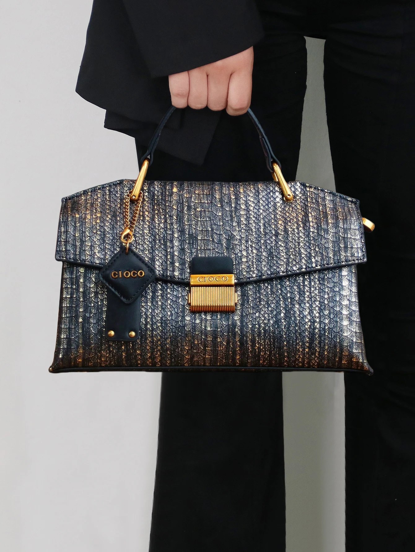 תיק יד יוקרתי בצורת נחש כחול רטרו חדש לשנת 2025, אופנתי ומפואר, קל משקל, בנפח גדול, עם כתף אחת