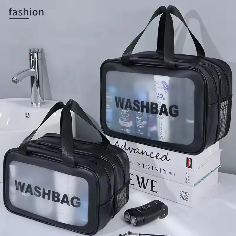 שק איפור פורטטיבי דו צדדי שקוף מפריד יבש-רטוב, שק כביסה נייד, שק אחסון קוסמטיקה לנסיעות, כושר ושחייה