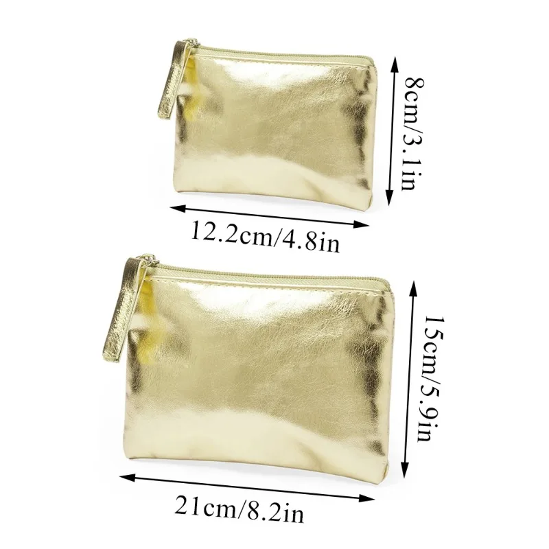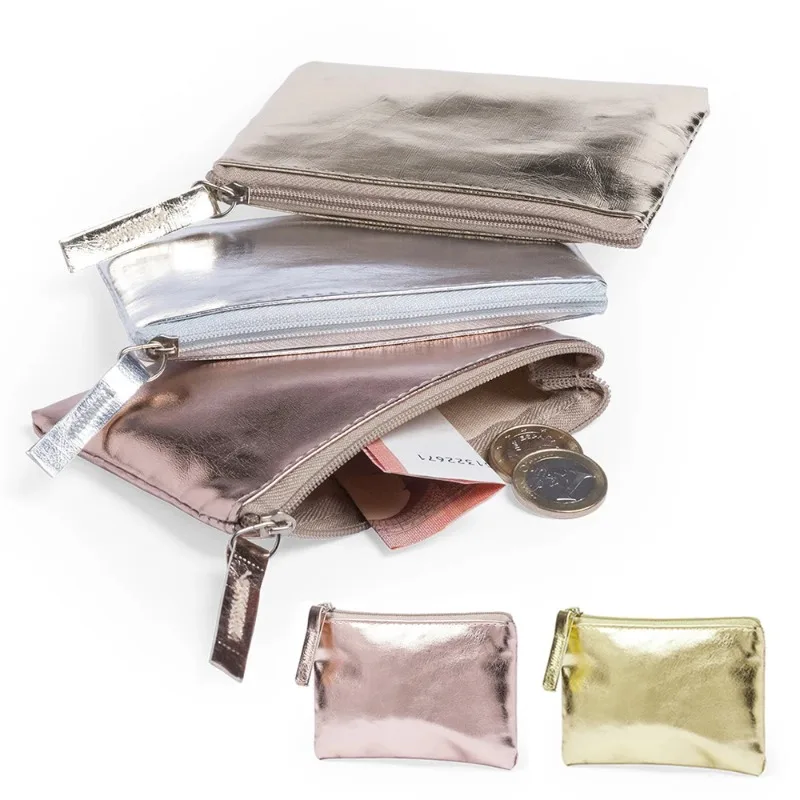 תיק מטבע רוז גולד וכסף דק מאוד עם רוכסן מעור פטנט לאחסון מטבעות ומפתחות, תיק קטן לנערות