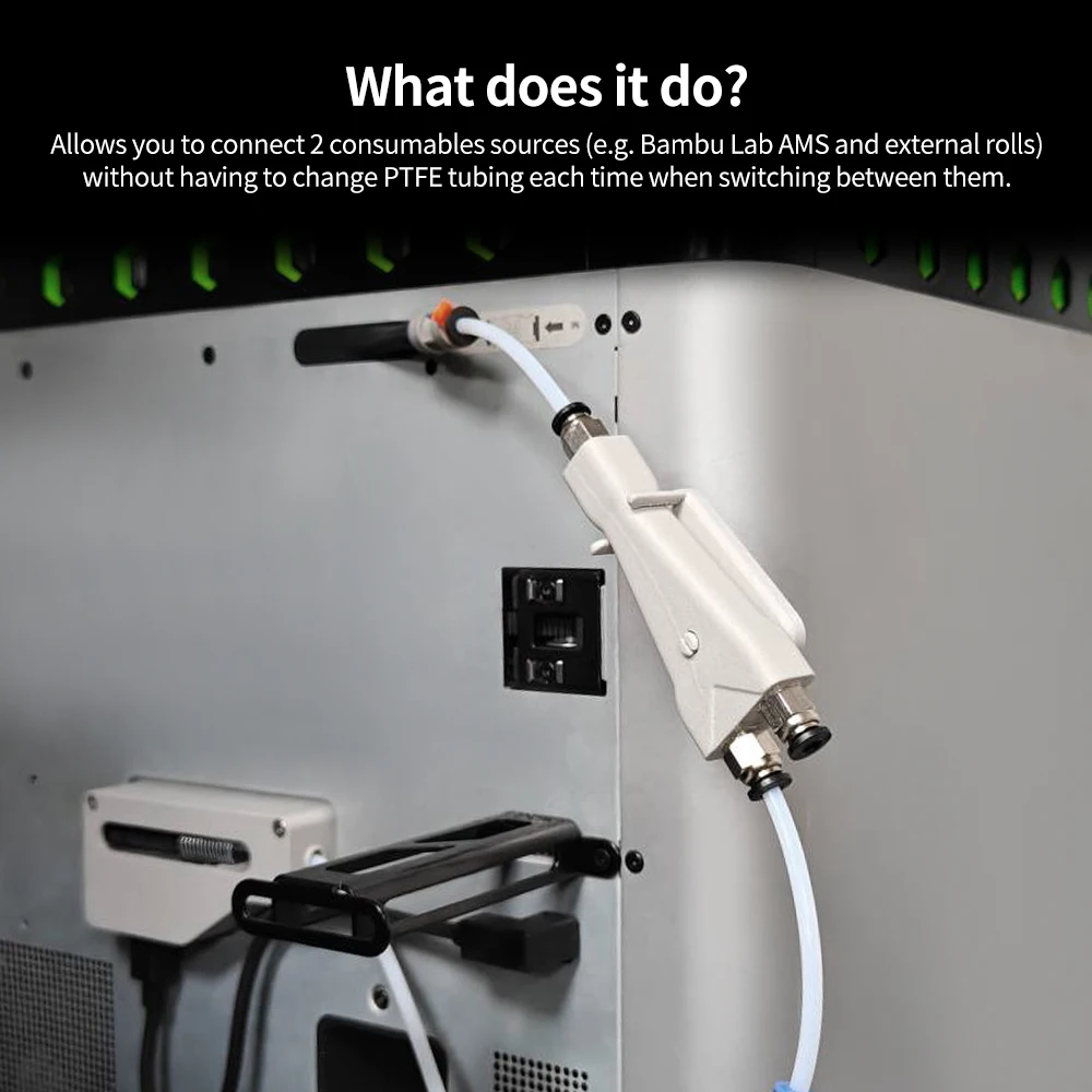 מחבר PTFE בצורת Y למדפסות תלת מימד מונע חסימה וסבך, סליל חיצוני, העברת חומרים מתכלים, פלסטיק עמיד, סליל קל לשימוש