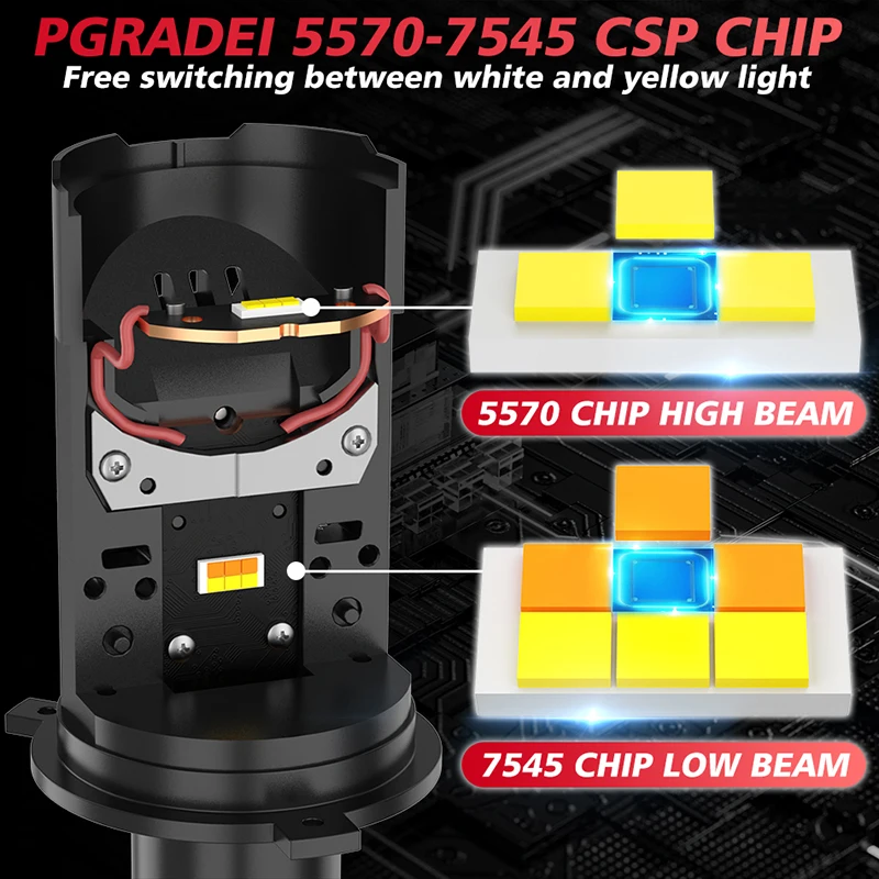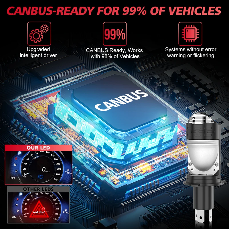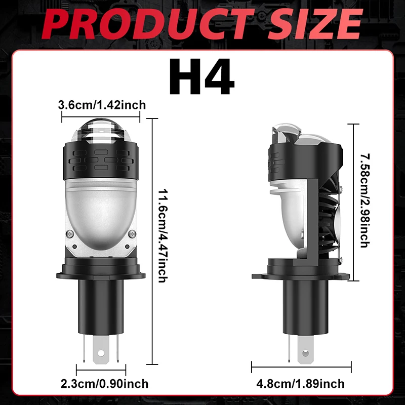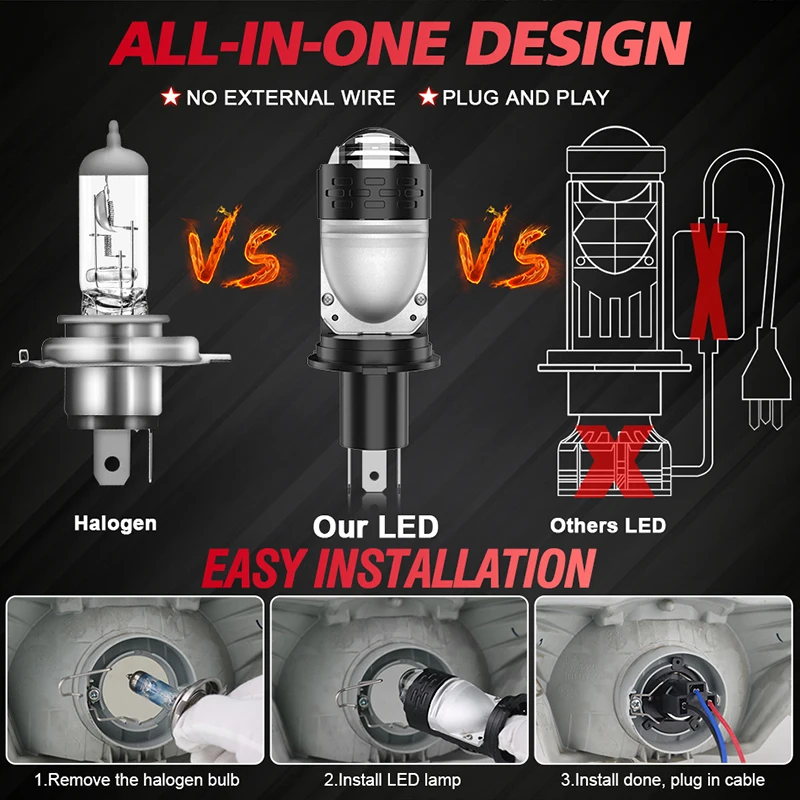 נורות לד Bullvision H4 9003/HB2 Hi/Lo קנבס 3000K 4300K 6000K מיני מקרן לד לאופנוע נורת פנס לד H4