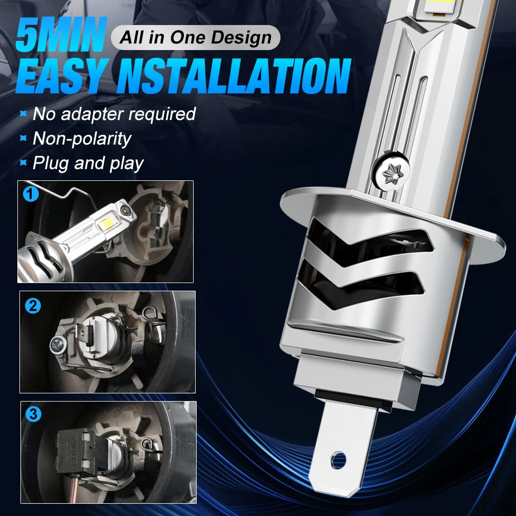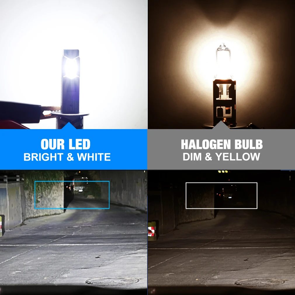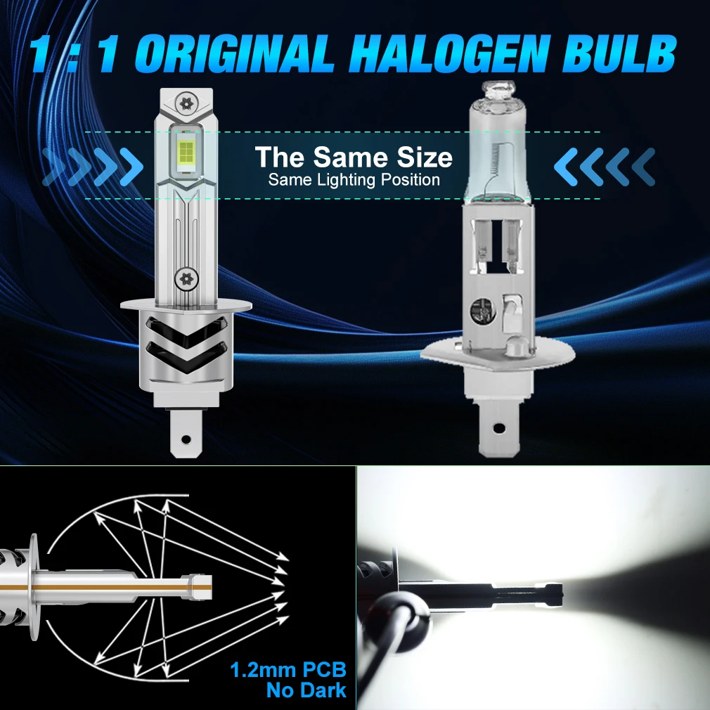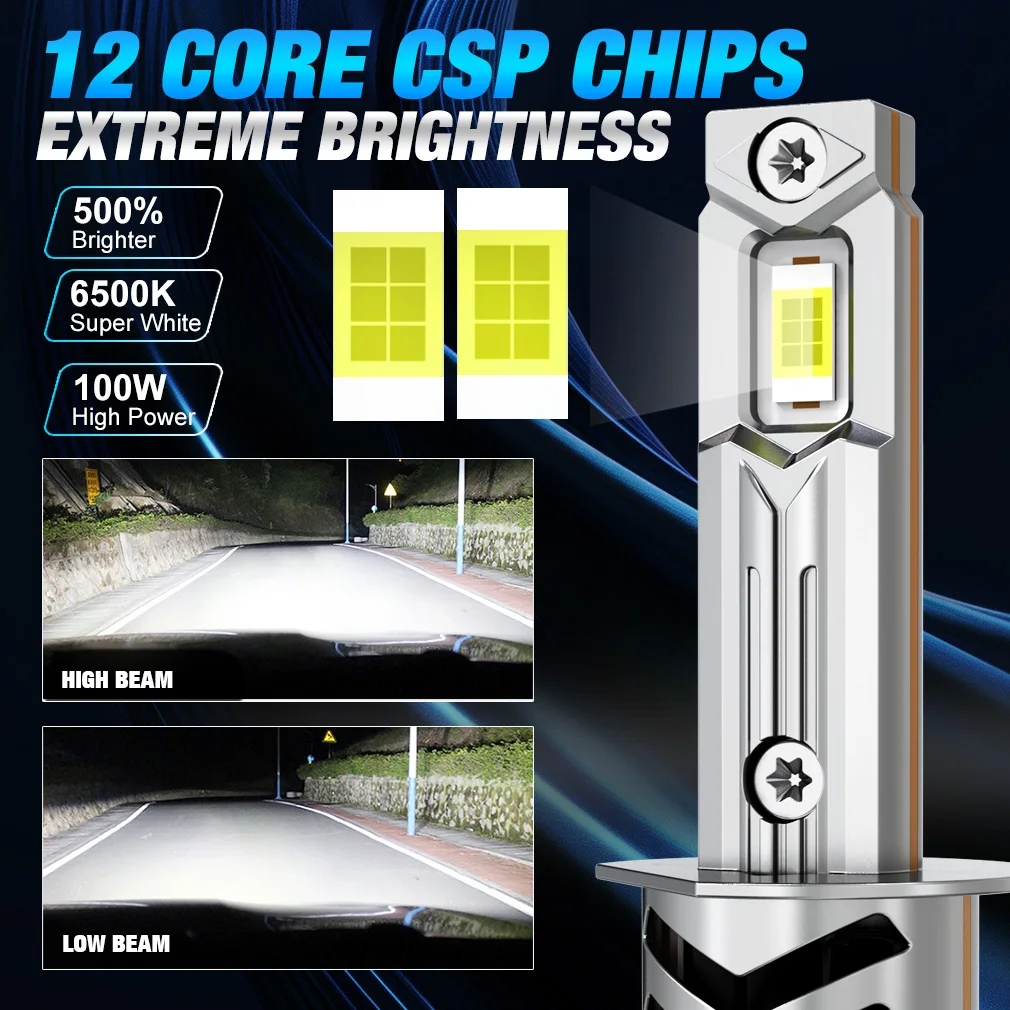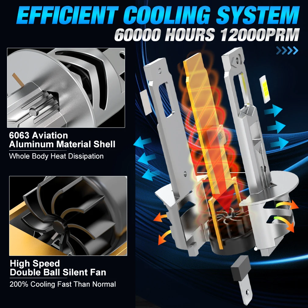 נורת פנסי LED H1 60000LM קנבס 100W, נורות LED H7 לפנסי רכב עם מאוורר, תאורת דיודה אוטומטית, פנס ערפל, התקנה פשוטה (Plug & Play), 6000K