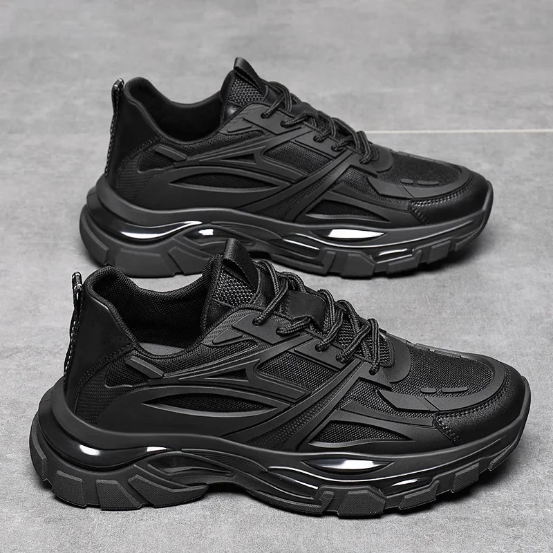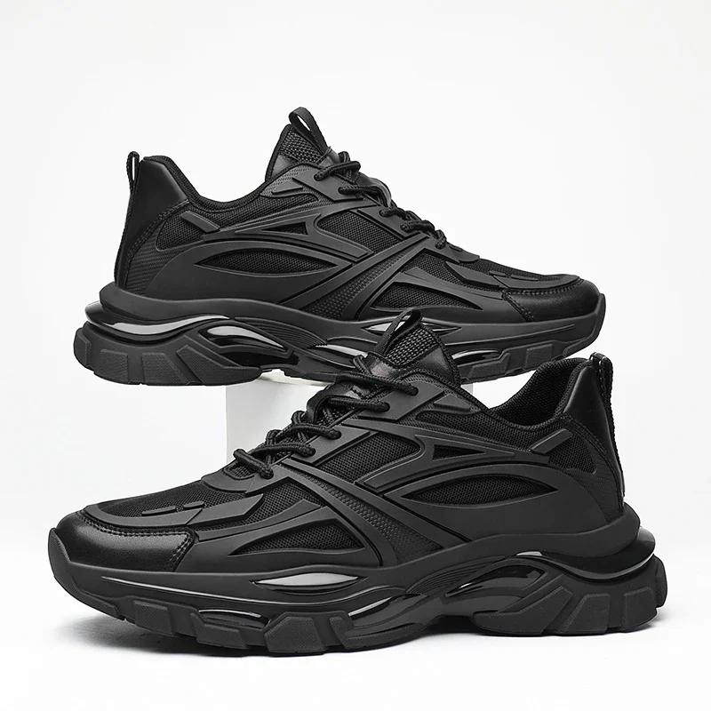 ויפול חורף גושי גושי גוברים נעלי ספורט מעור אמיתי נעלי רשת מעור עבה חם סוליות גברים עלייה 6-8 ס "מ