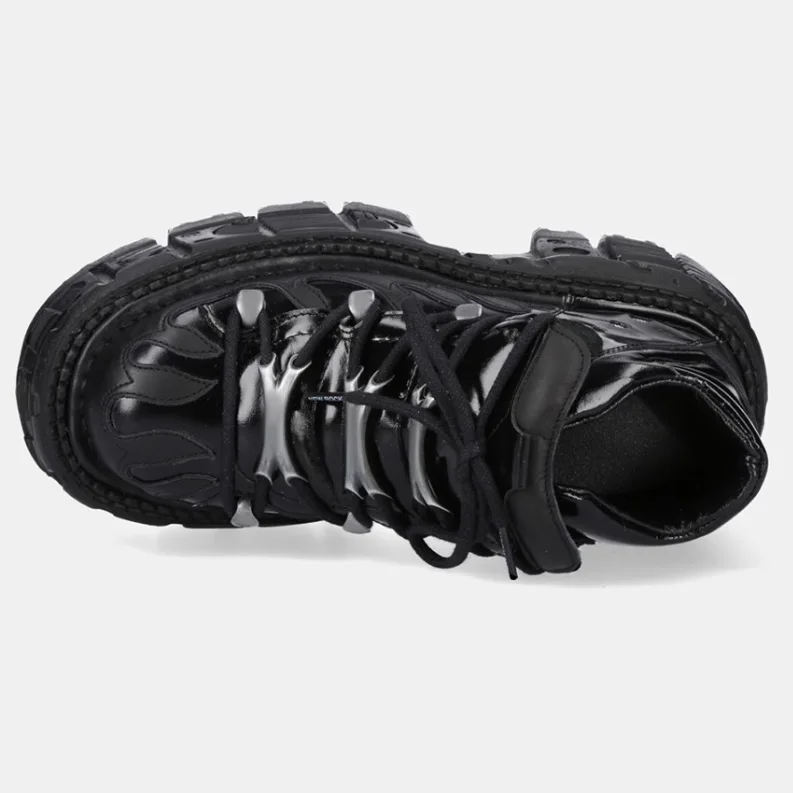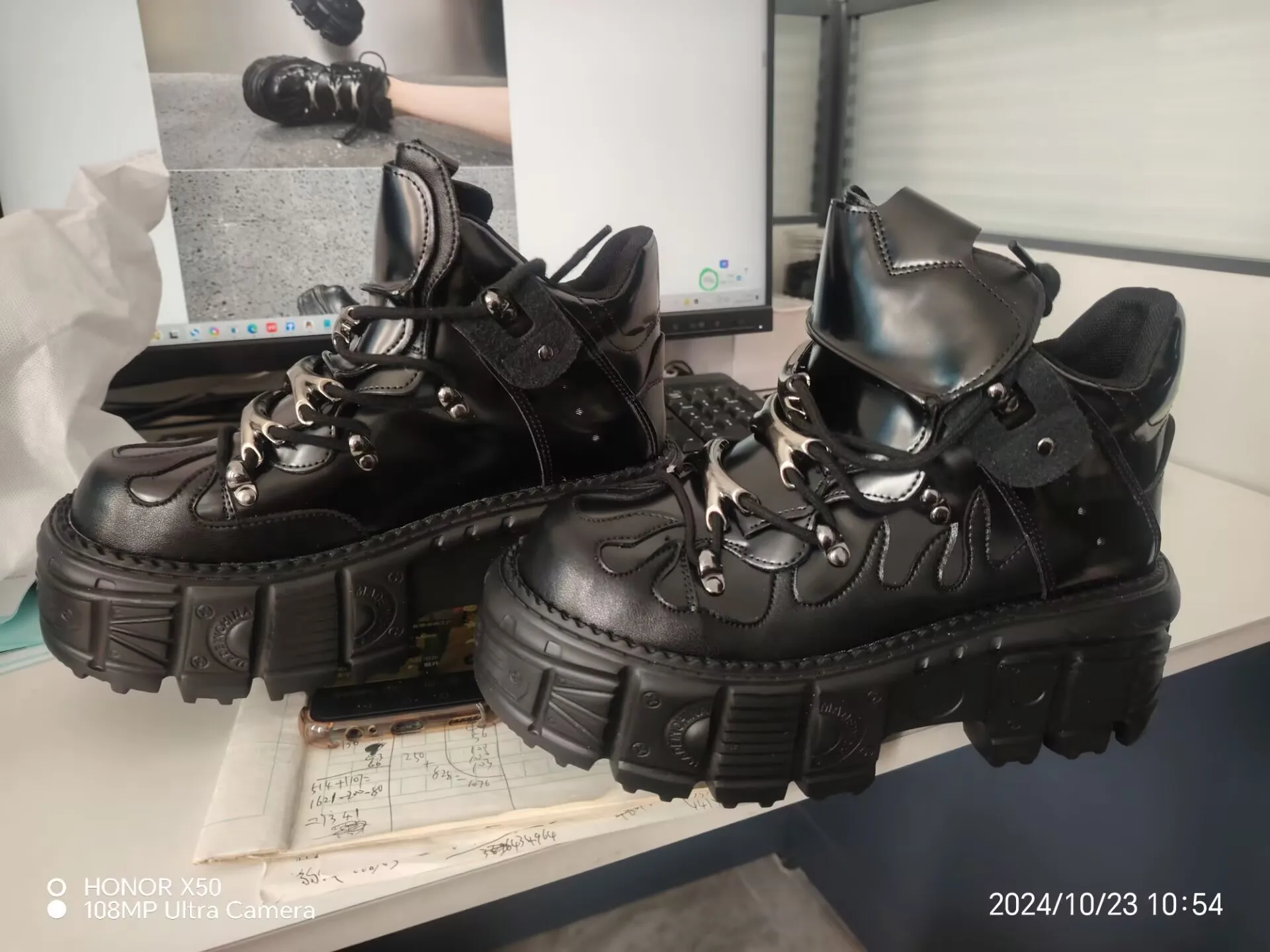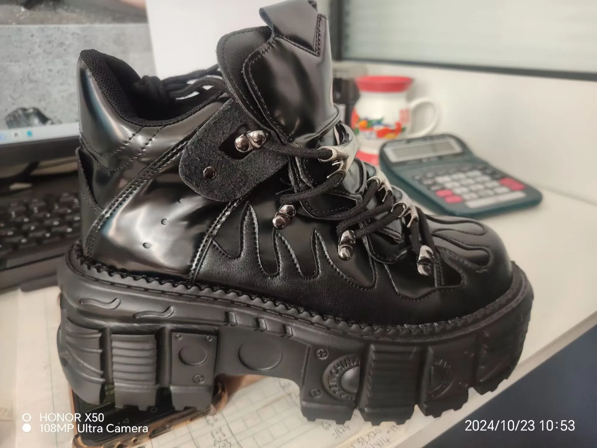 נעלי אבא עם פלטפורמה גבוהה מתכתית זהה לגברים ונשים בסגנון פאנק מאפין אפל ספרדי מעור פרה