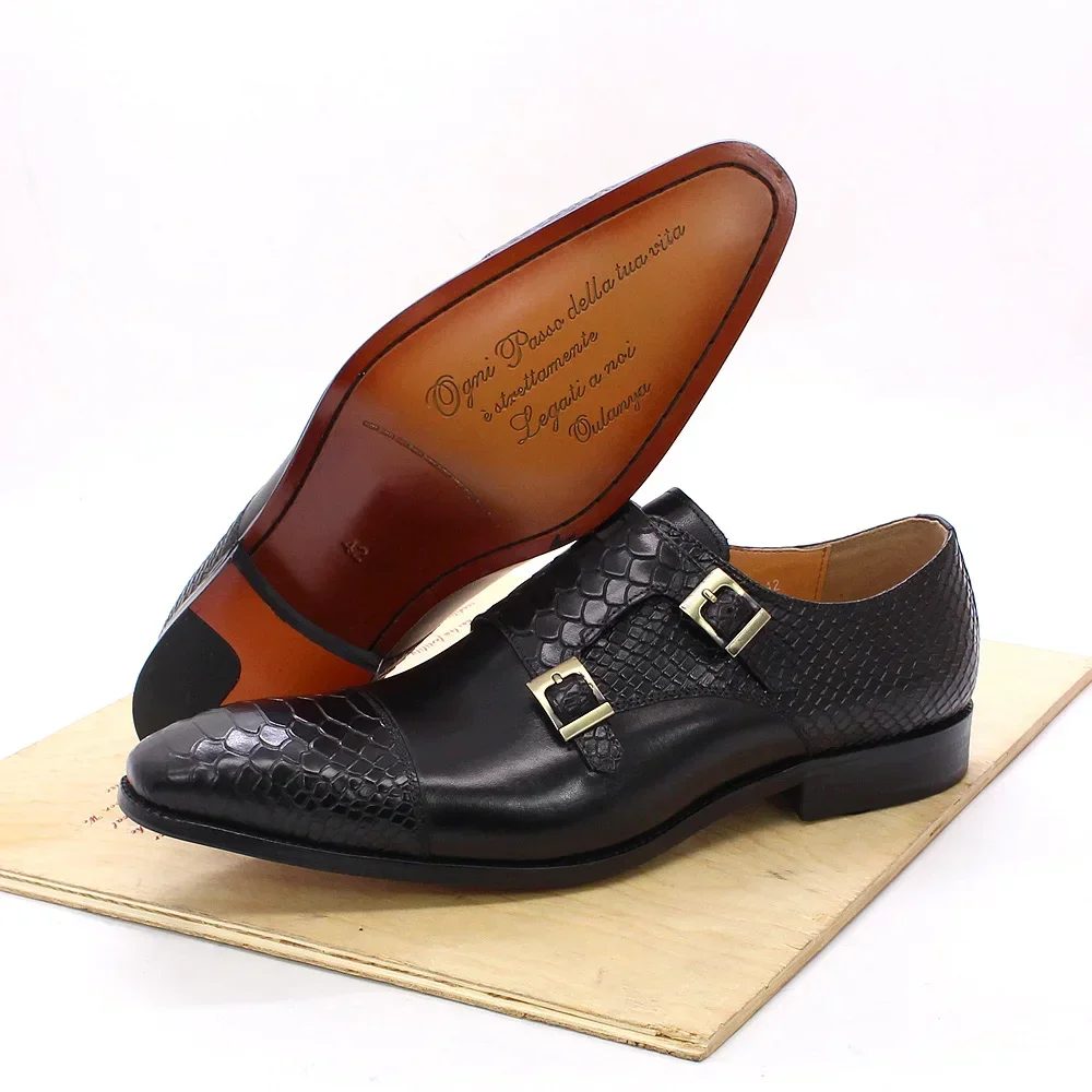 נעלי גברים ללבישה מידה 39-46 עור אמיתי עם סגירת כפתור כפולה, רצועת מונק והדפס נחש קלאסי בסגנון איטלקי