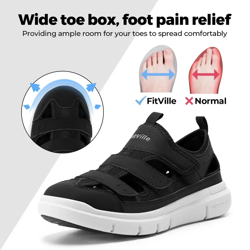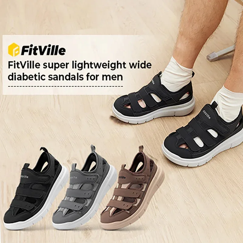 נעלי סנדלים לגברים של FitVille, נעלי סוכרת מורחבות לגברים, נעלי קאז'ואל קלות לפלנטר פשיטיס, תמיכה בקשת, הקלה מכאבים