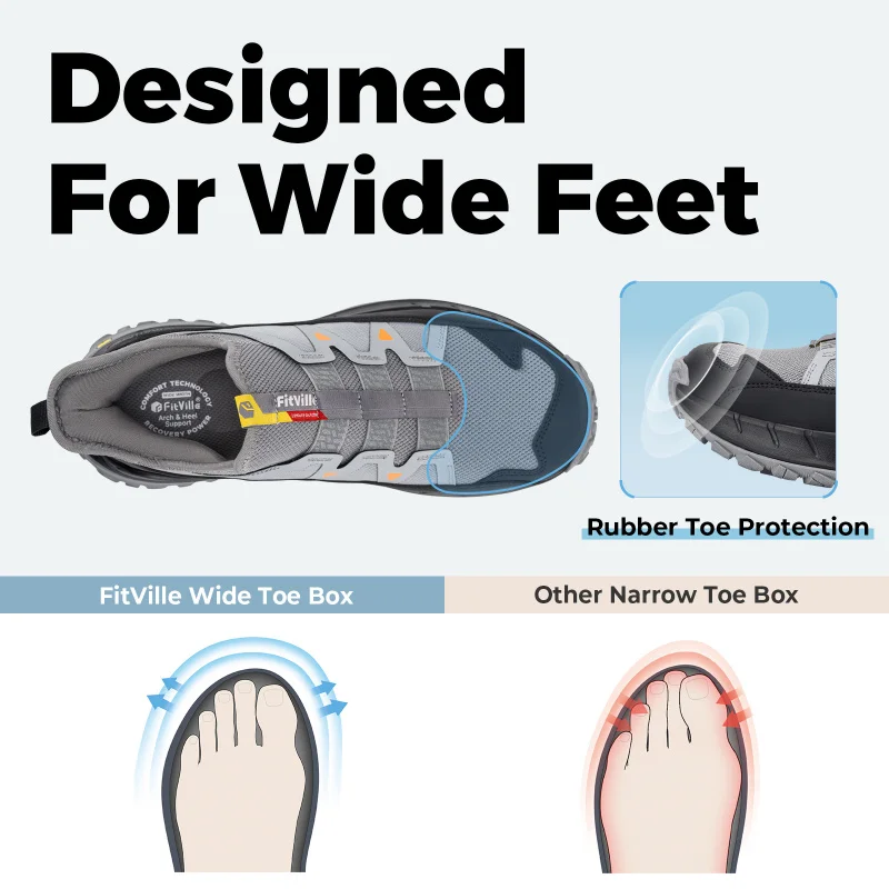 FitVille נעלי סניקרס רחבות במיוחד לגברים נעלי ריצה נוחות ללא החלקה טיולים ללא החלקה עם תמיכה בקשת לרגליים נפוחות
