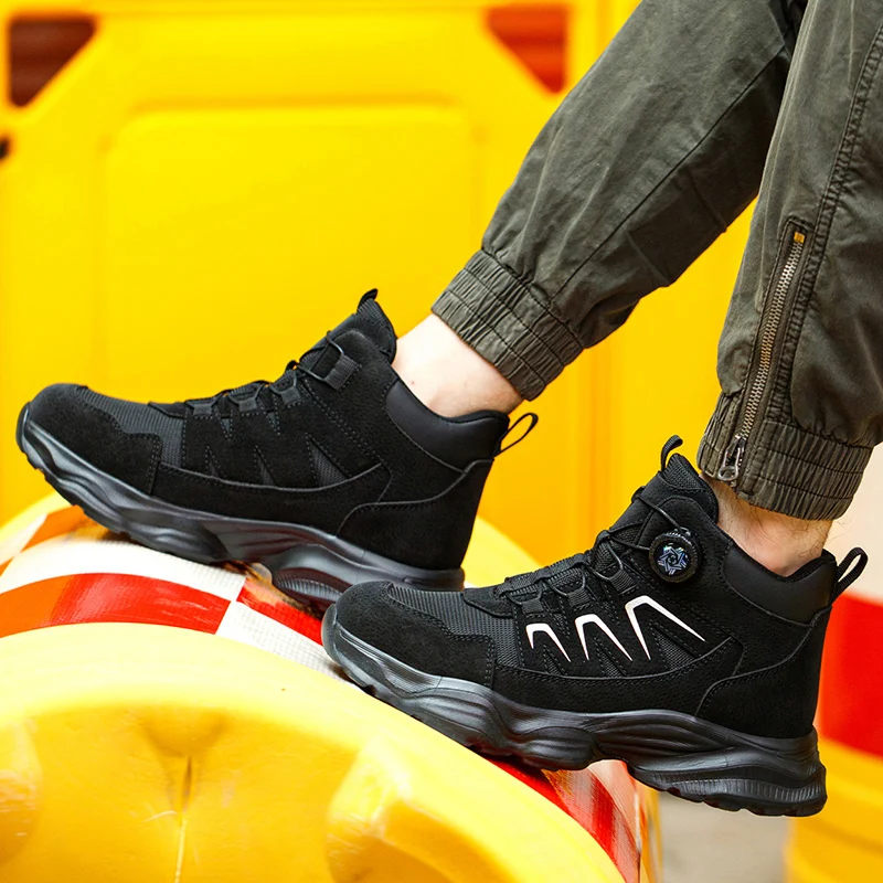 נעלי עבודה עם כפתור סובב לגברים, פנים מפלדה, נעלי בטיחות לעבודה, נגד שבירה, נגד דקירה, בלתי ניתנות לשבירה, נעלי בנייה וכרייה