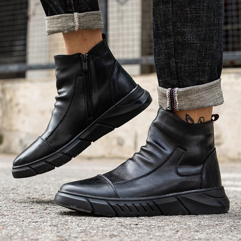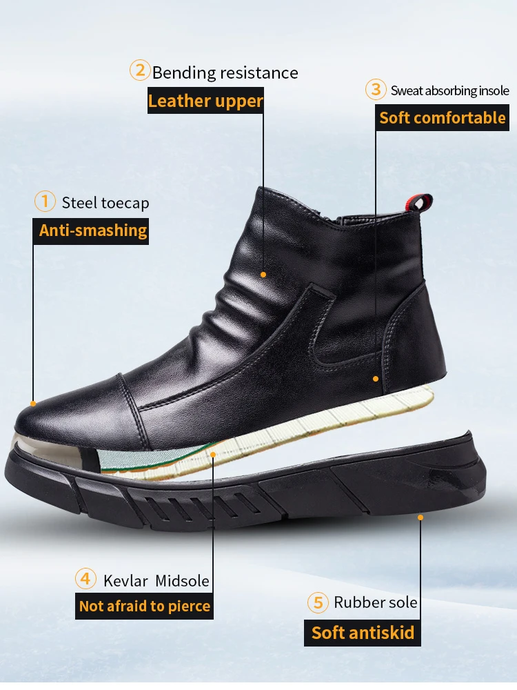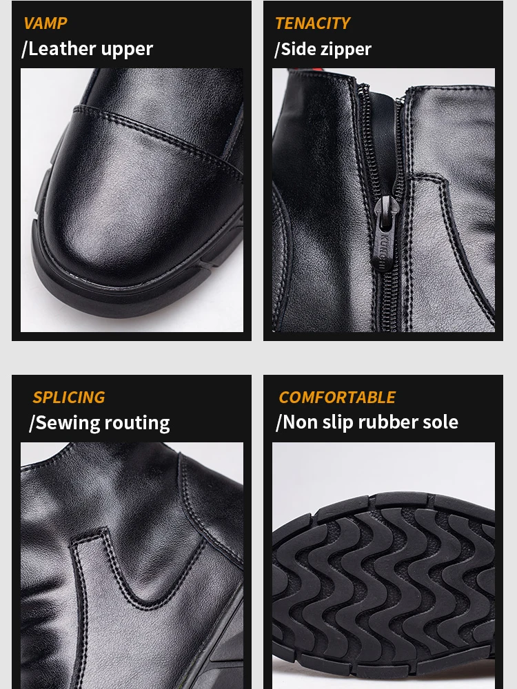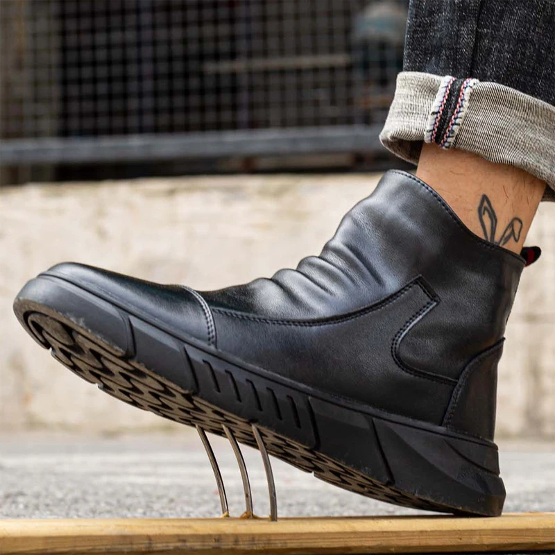 נעלי עור עמיד למים נעלי בטיחות גברים צד רוכסן עבודה מגפי בטיחות נעלי בית פלדה לנקב